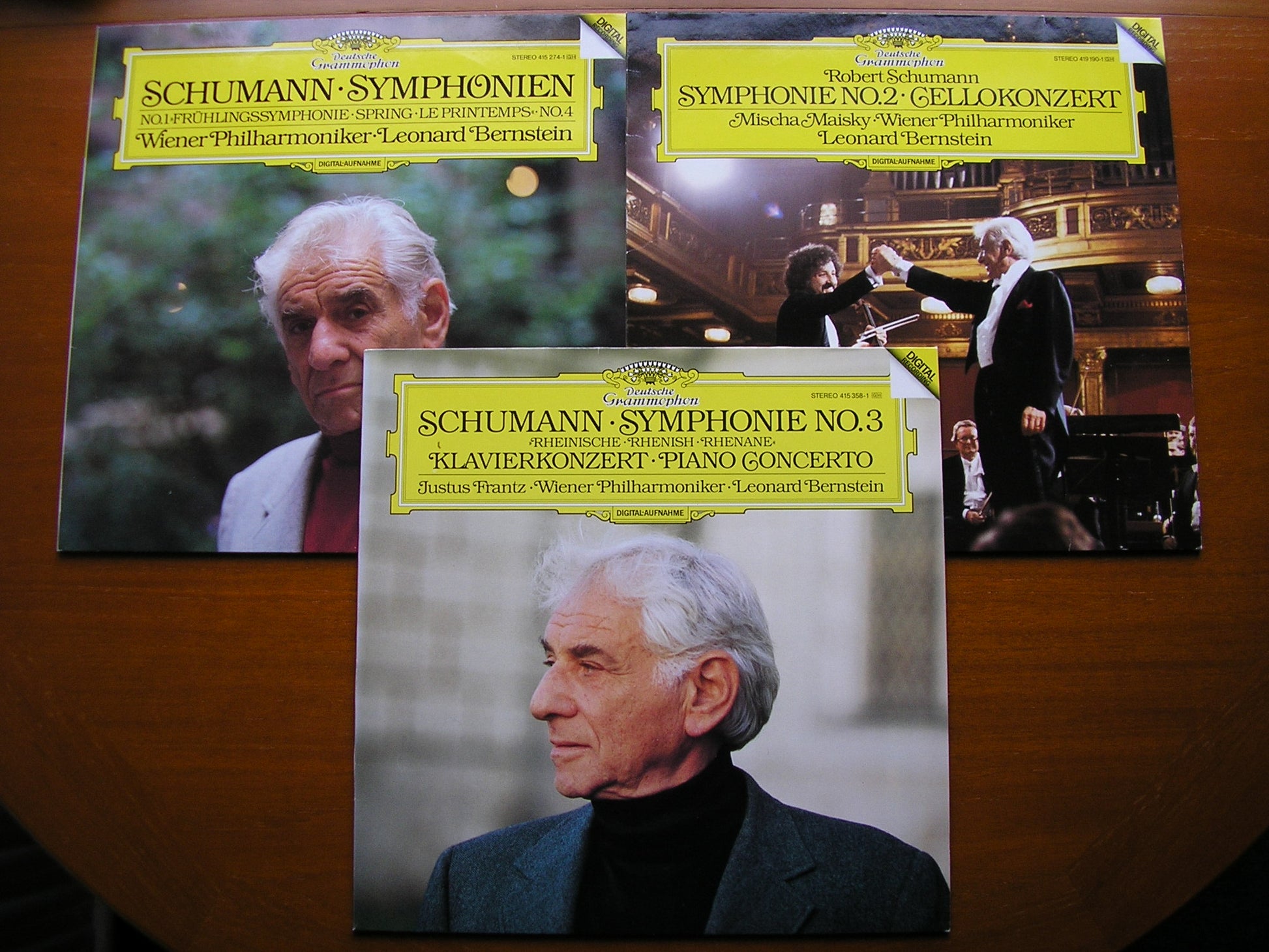 415 274 / 415 358 / 419 190  SCHUMANN: SYMPHONIES Nos. 1 - 4 / CELLO CONCERTO / PIANO CONCERTO    MISCHA MAISKY / JUSTUS FRANTZ / VIENNA PHILHARMONIC ORCHESTRA / LEONARD BERNSTEIN