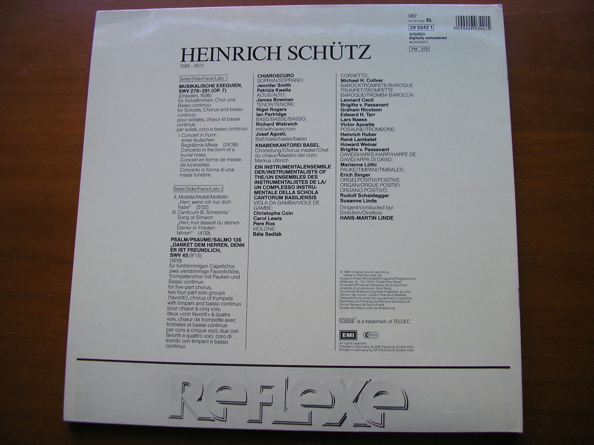 29 0342  SCHUTZ: MUSIKALISCHE EXEQUIEN / PSALM 136   CHIAROSCURO / SCHOLA CANTORUM BASILIENSIS / HANS-MARTIN LINDE
