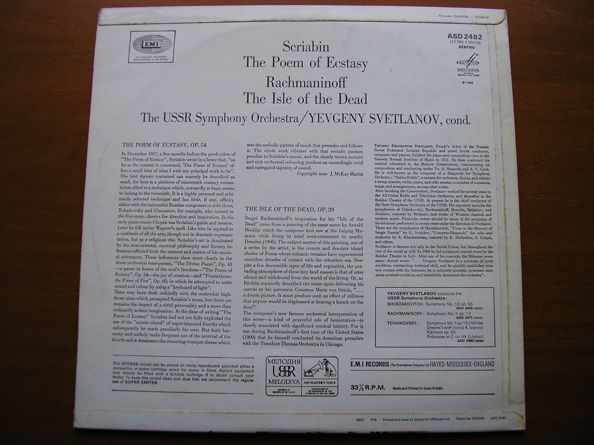 ASD 2482  SCRIABIN: THE POEM OF ECSTASY / RACHMANINOV: ISLE OF THE DEAD   YEVGENY SVETLANOV / USSR SYMPHONY ORCHESTRA