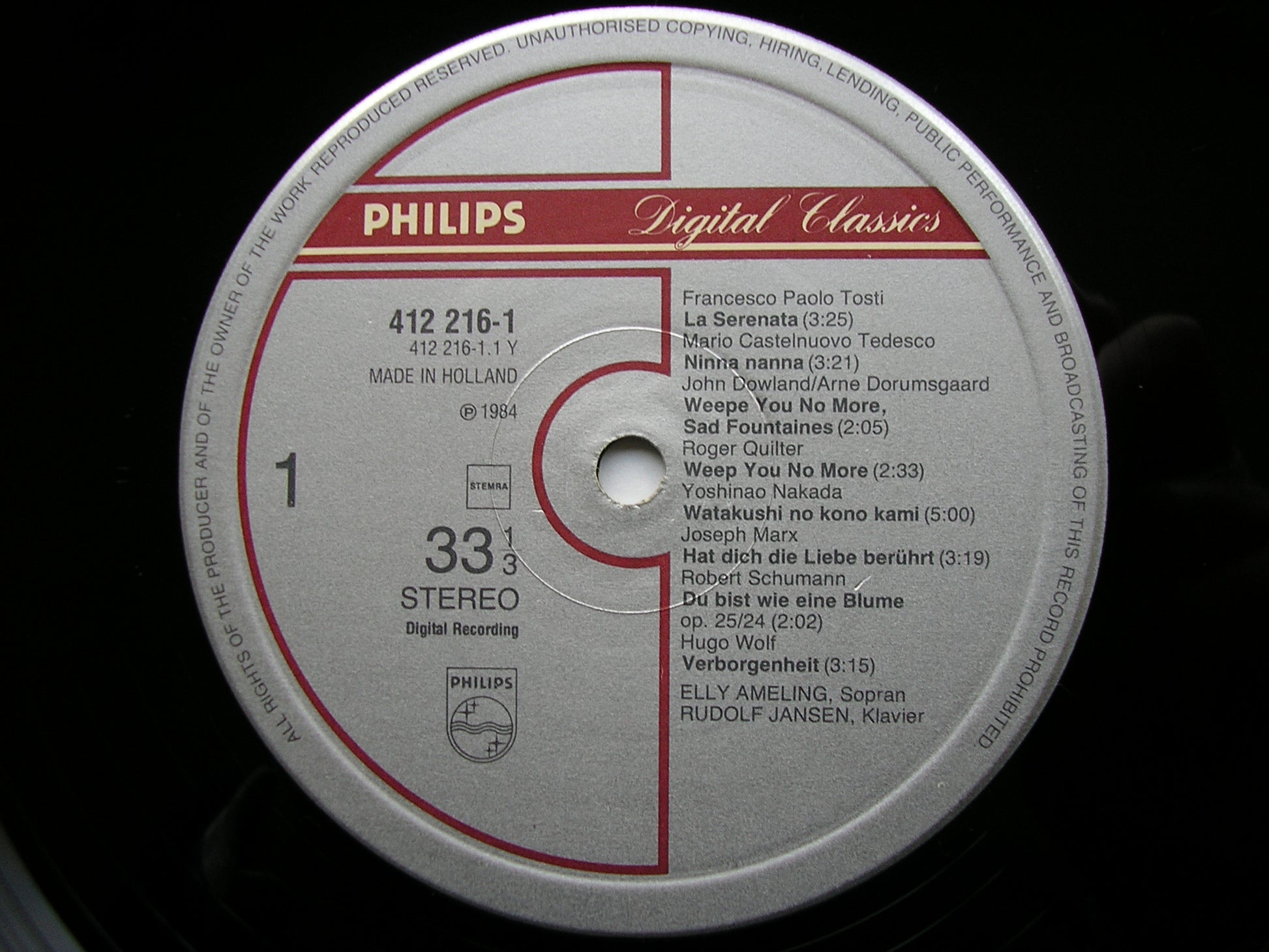 412 216  SERENATA: TOSTI / OBRADORS / CHABRIER / DOWLAND / QUILTER / SATIE / HAHN / GOUNOD / MARX / TEDESCO / BIZET / SCHUMANN / WOLF     ELLY AMELING / RODOLF JANSEN