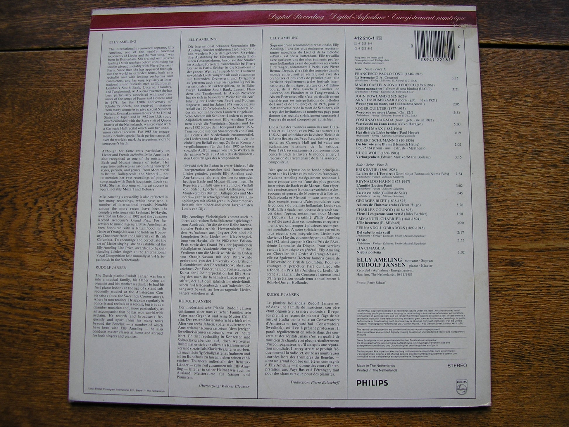 SERENATA: SONG RECITAL ELLY AMELING / RUDOLF JANSEN 412 216