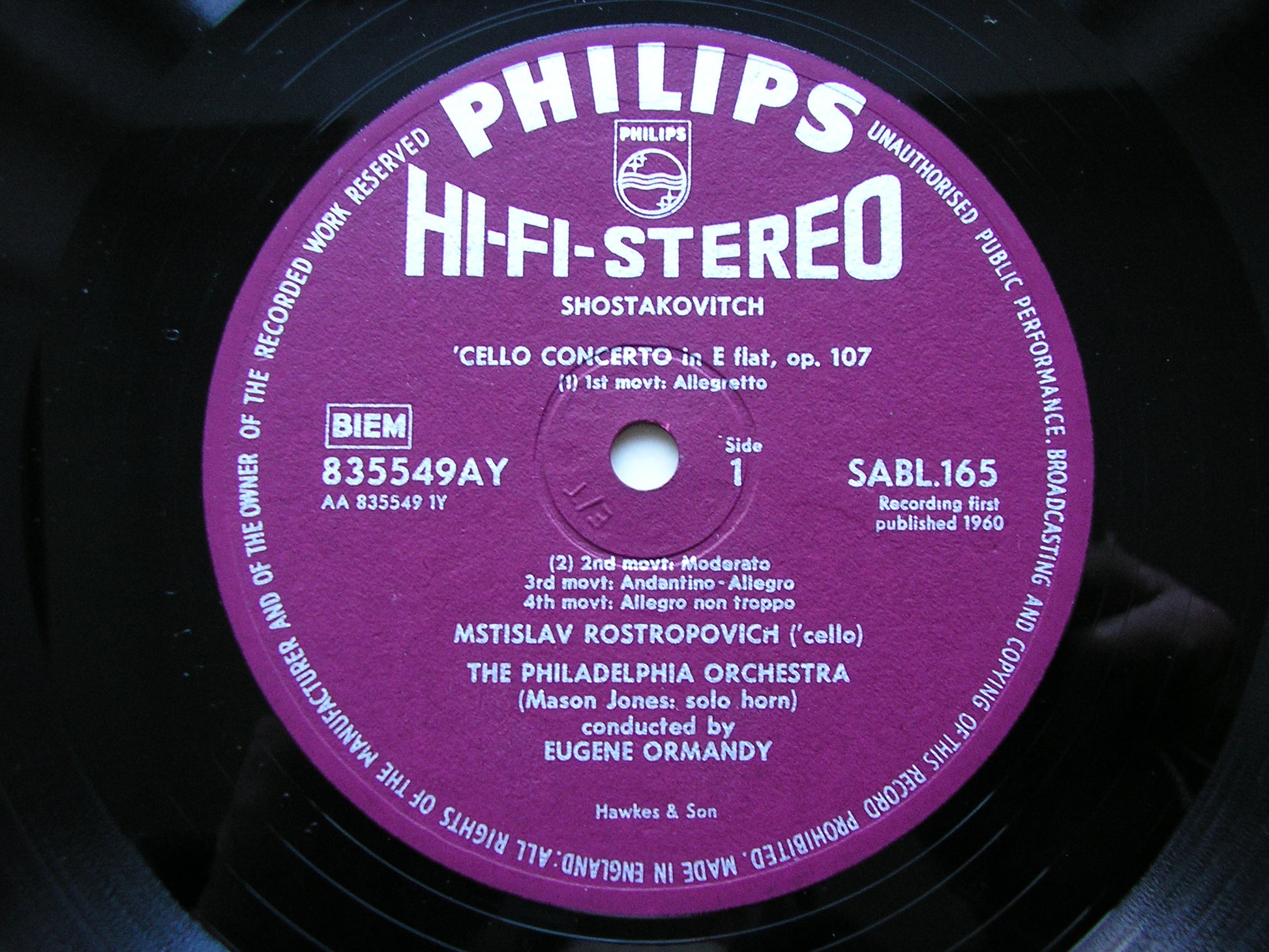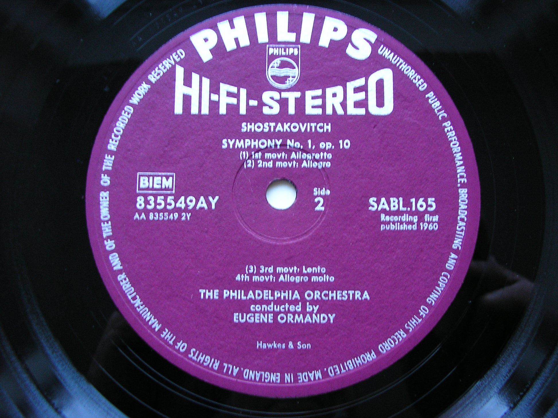 PHILIPS  UK 1960    PLUM & SILVER HI - FI STEREO SLEEVE & LABELS     NM / EX a little laminate lift on front