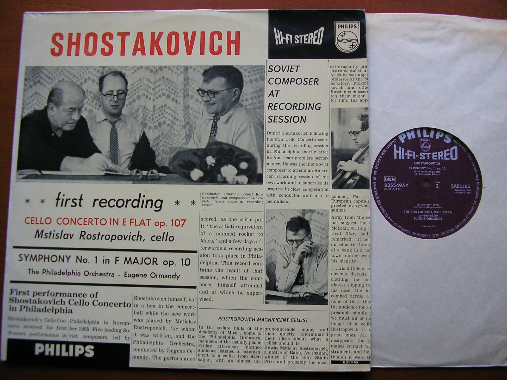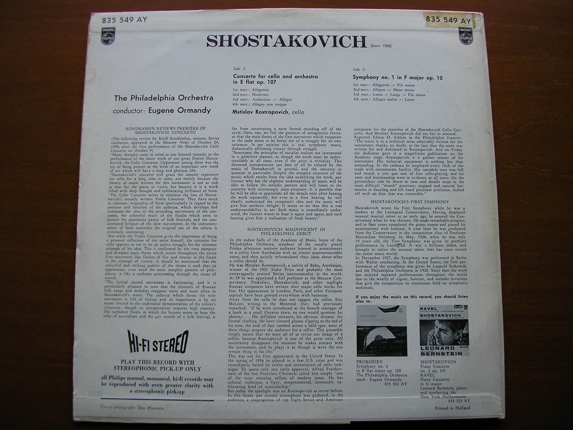 835 549 AY  SHOSTAKOVICH: CELLO CONCERTO / SYMPHONY No. 1  MSTISLAV ROSTROPOVICH / PHILADELPHIA ORCHESTRA / EUGENE ORMANDY