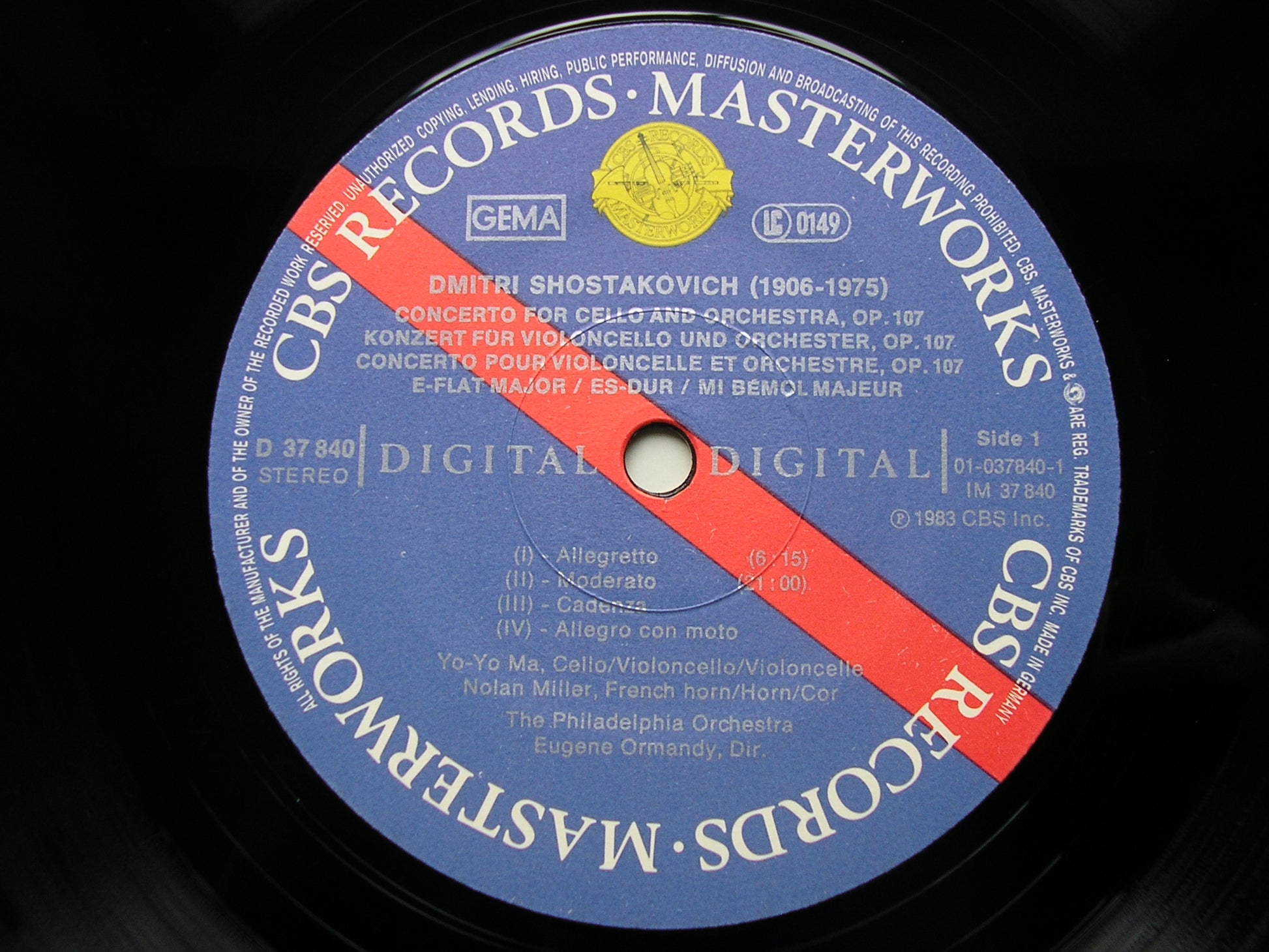 D 37840  SHOSTAKOVICH & KABALEVSKY: CELLO CONCERTOS     YO-YO MA / EUGENE ORMANDY / PHILADELPHIA ORCHESTRA