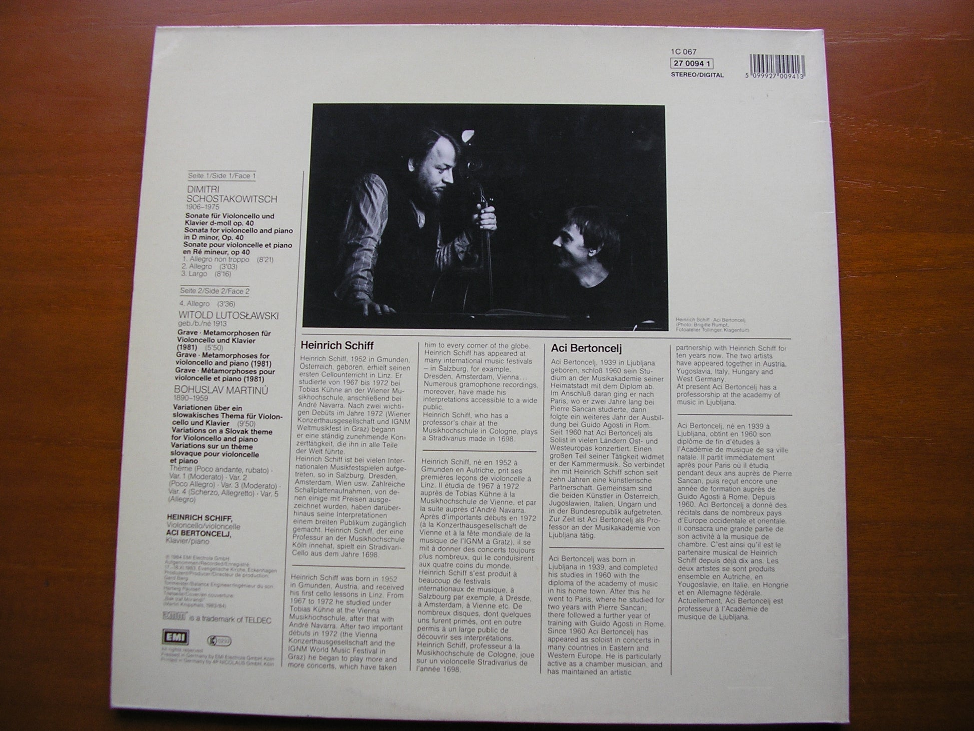 27 0094  SHOSTAKOVICH / LUTOSLASKI / MARTINU: CHAMBER MUSIC     HEINRICH SCHIFF / ACI BERTONCELJ