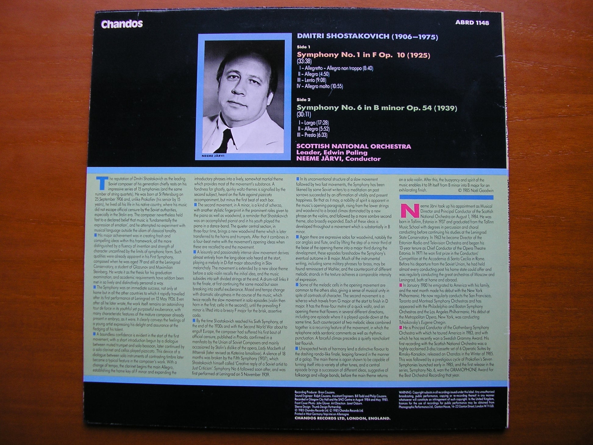 SHOSTAKOVICH: SYMPHONIES Nos. 1 & 6 JARVI / SCOTTISH NATIONAL ORCHESTRA ABRD 1148