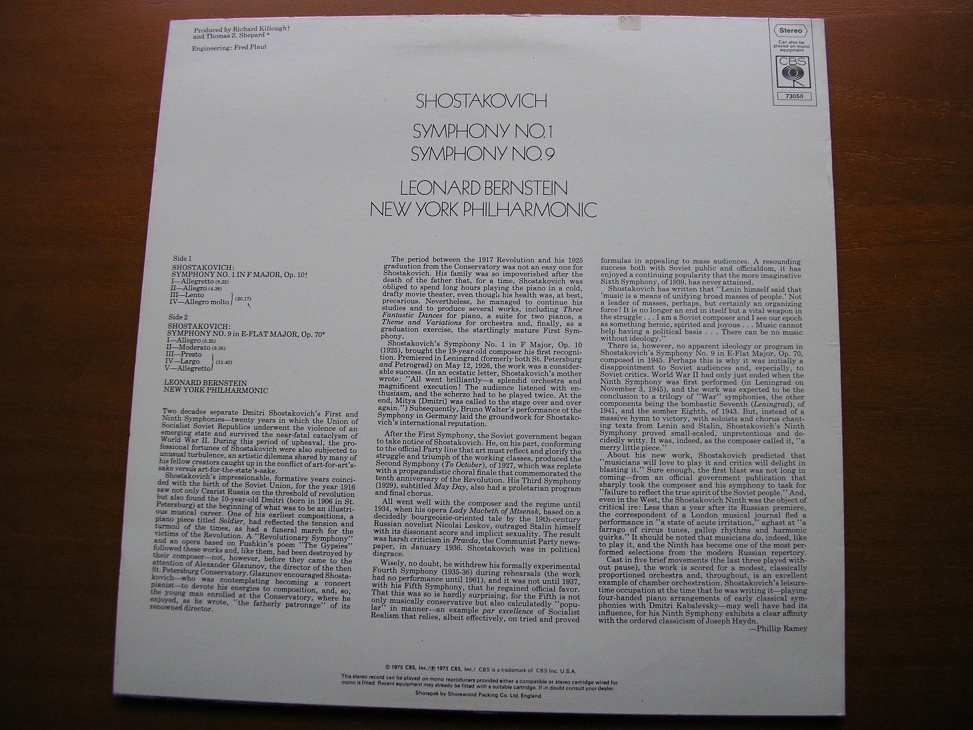 73050  SHOSTAKOVICH: SYMPHONIES Nos. 1 & 9     LEONARD BERNSTEIN / NEW YORK PHILHARMONIC ORCHESTRA