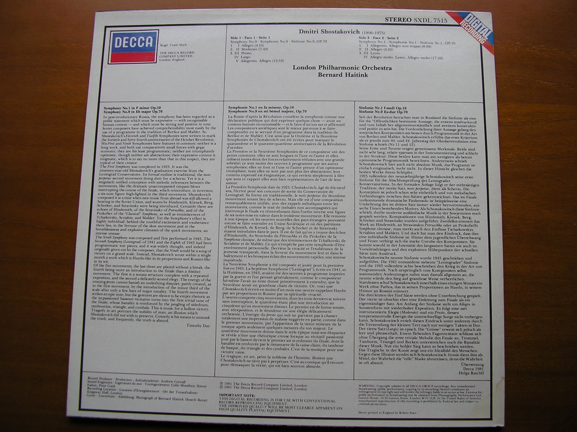 SXDL 7515  SHOSTAKOVICH: SYMPHONIES Nos. 1 & 9      BERNARD HAITINK / CONCERTGEBOUW ORCHESTRA AMSTERDAM