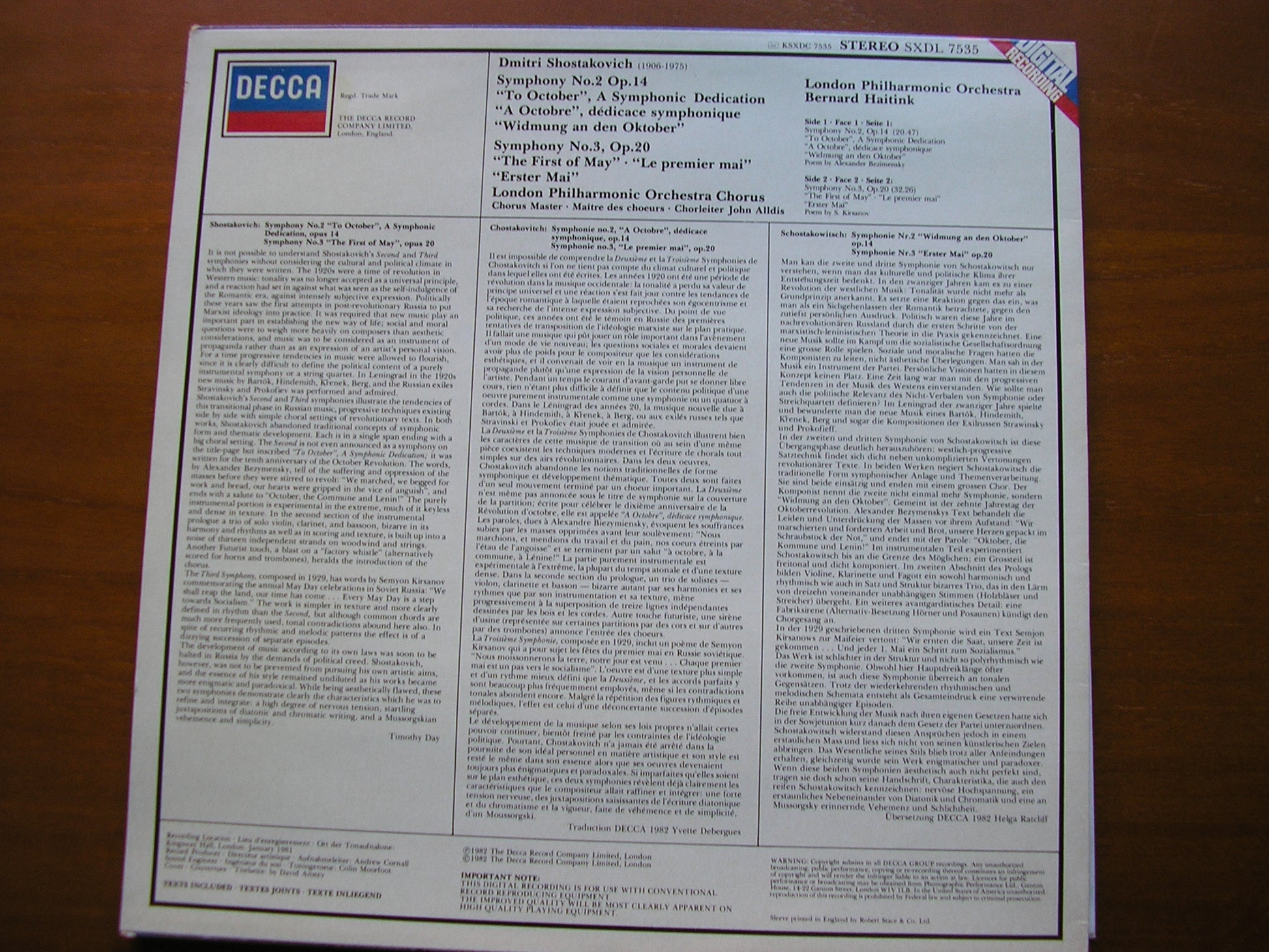 SHOSTAKOVICH: SYMPHONIES Nos. 2 & 3 HAITINK / LONDON PHILHARMONIC SXDL 7535
