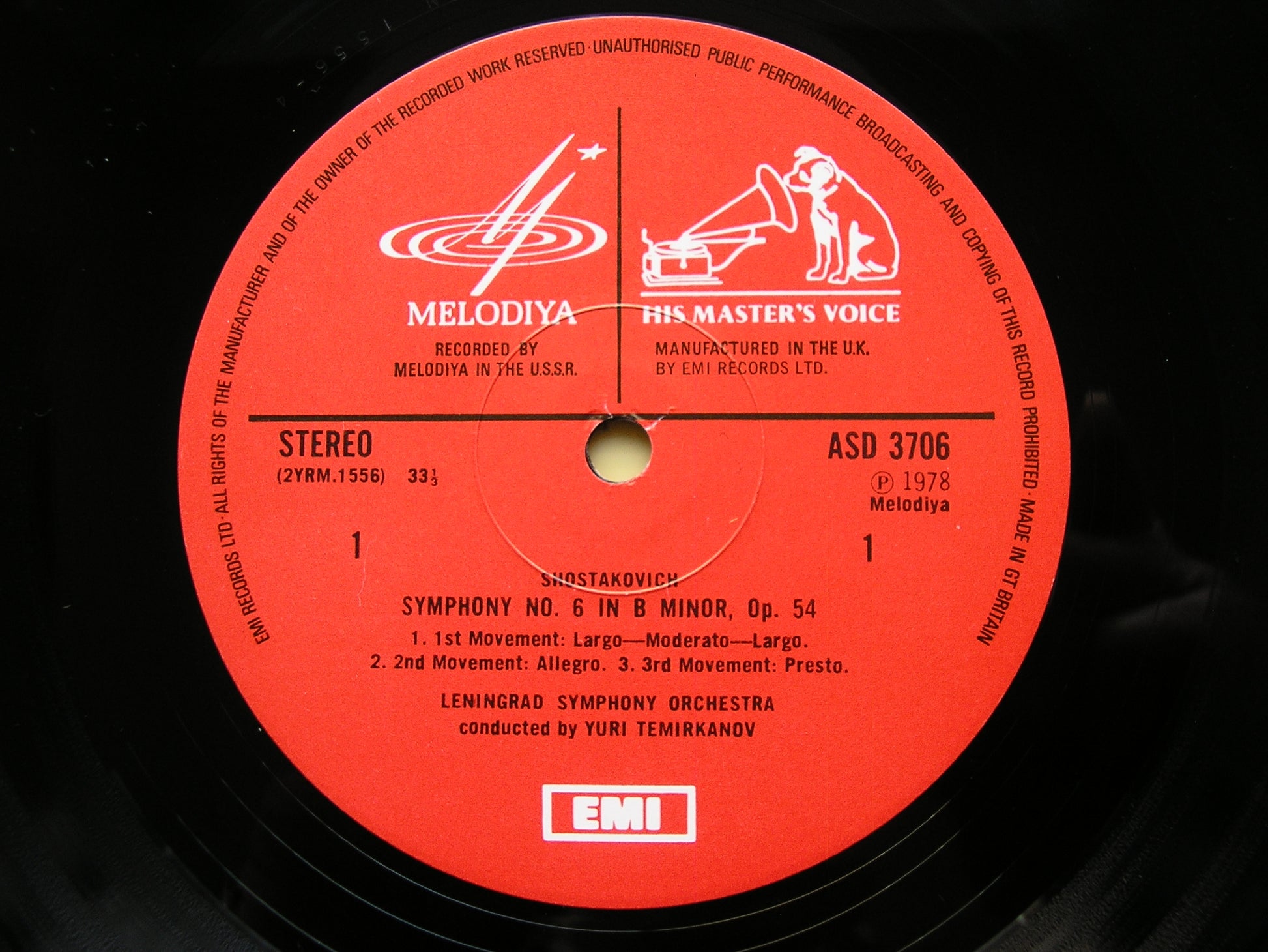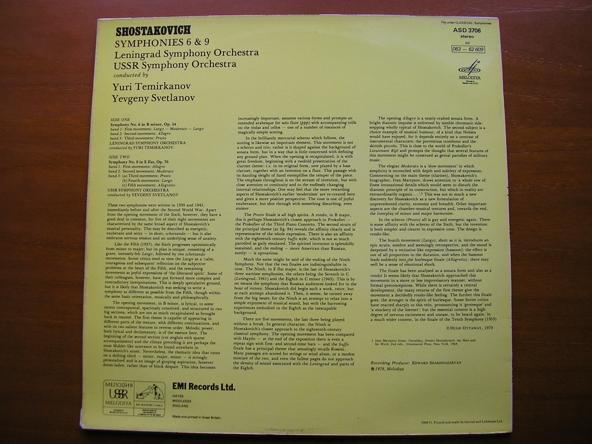ASD 3706  SHOSTAKOVICH: SYMPHONY No. 6   YURI TEMIRKANOV / LENINGRAD PHILHARMONIC & SYMPHONY No. 9   YEVGENY SVETLANOV / USSR SYMPHONY ORCHESTRA