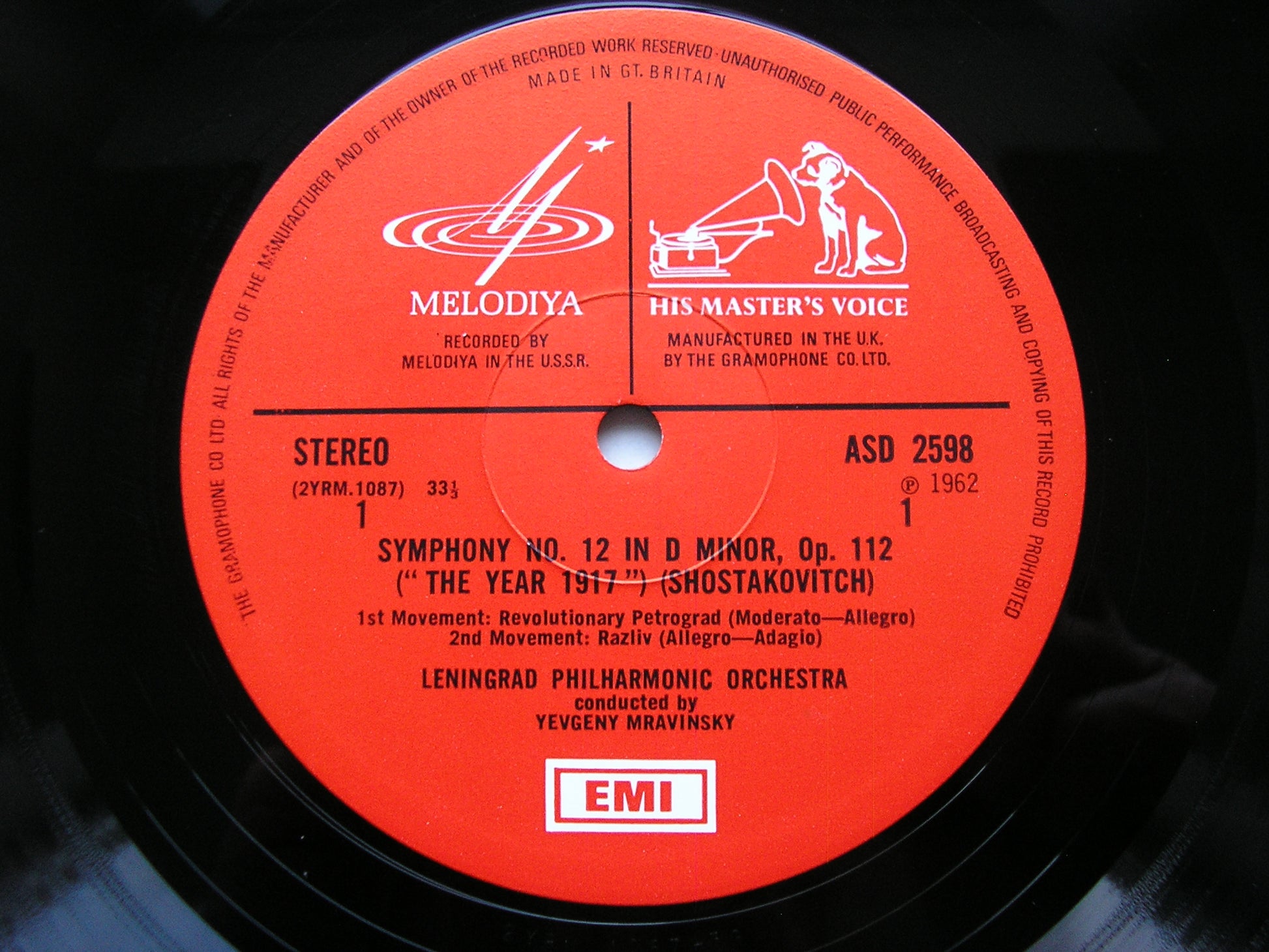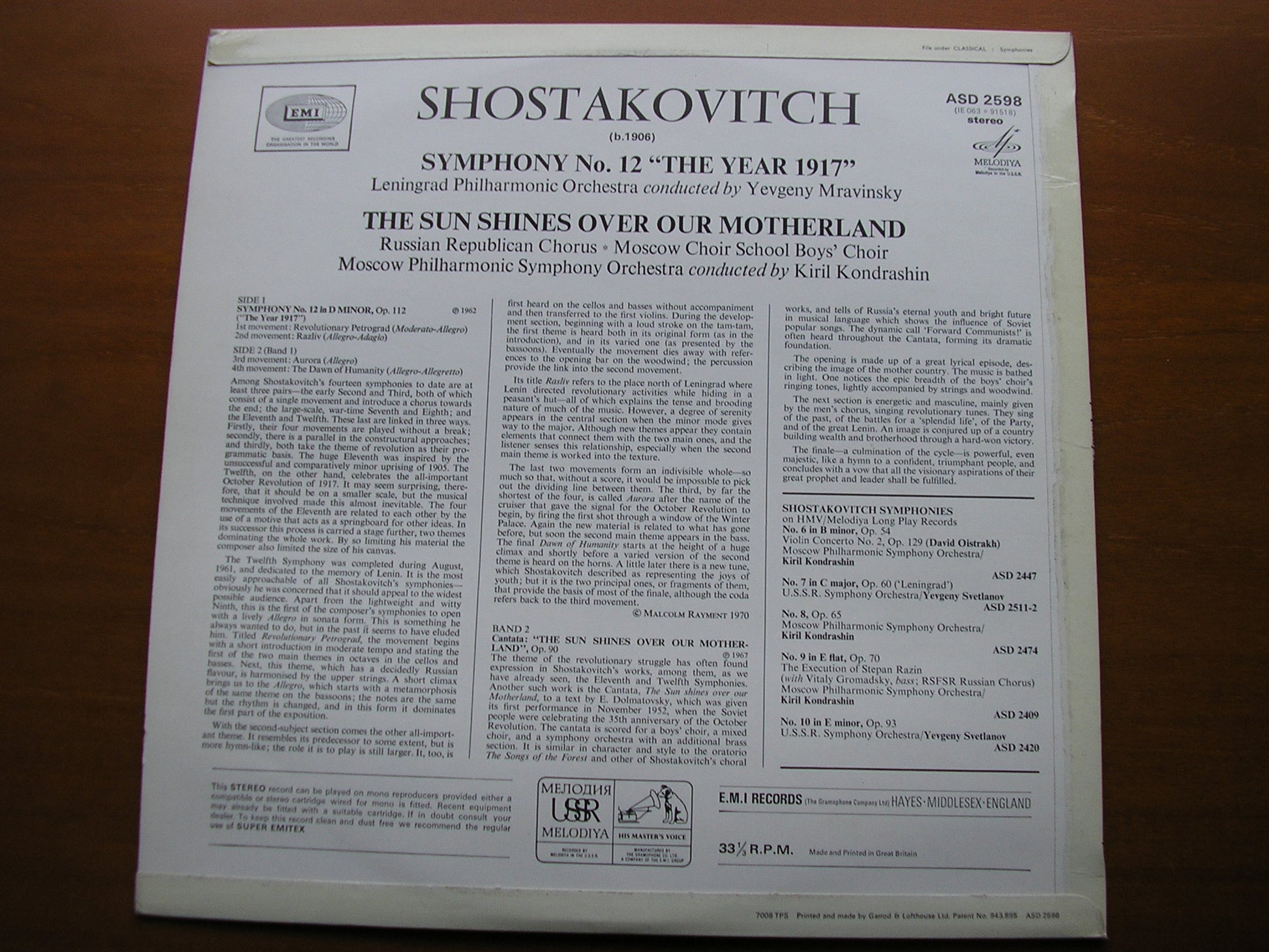 ASD 2598  SHOSTAKOVICH: SYMPHONY No. 12  YEVGENY MRAVINSKY / LENINGRAD PHILHARMONIC / THE SUN SHINES OVER OUR MOTHERLAND     KIRIL KONDRASHIN / MOSCOW PHILHARMONIC ORCHESTRA