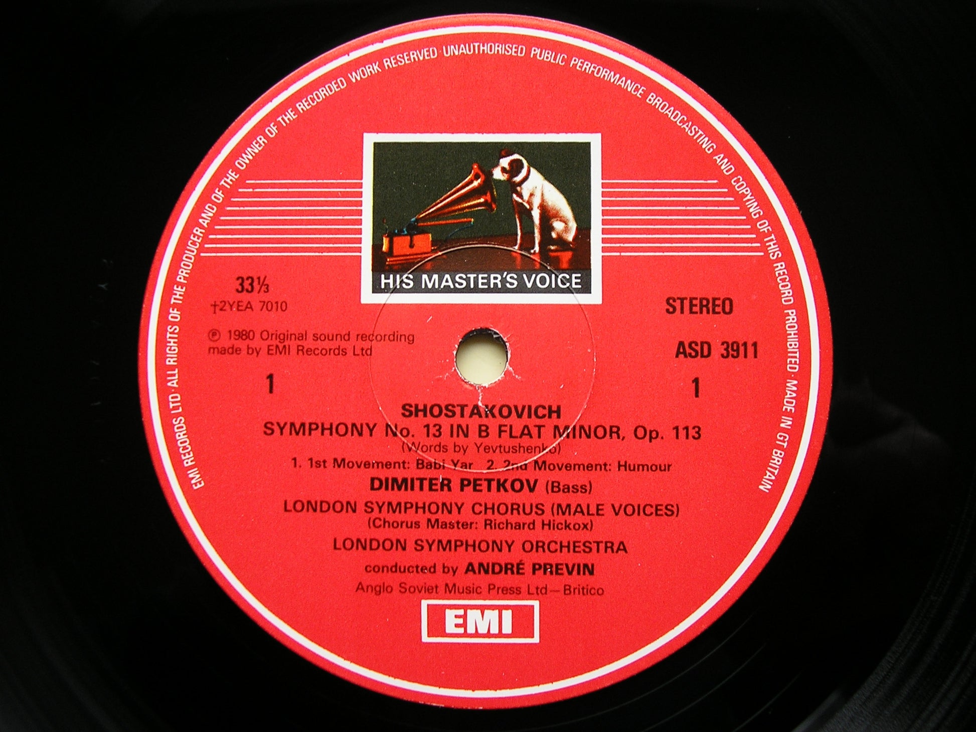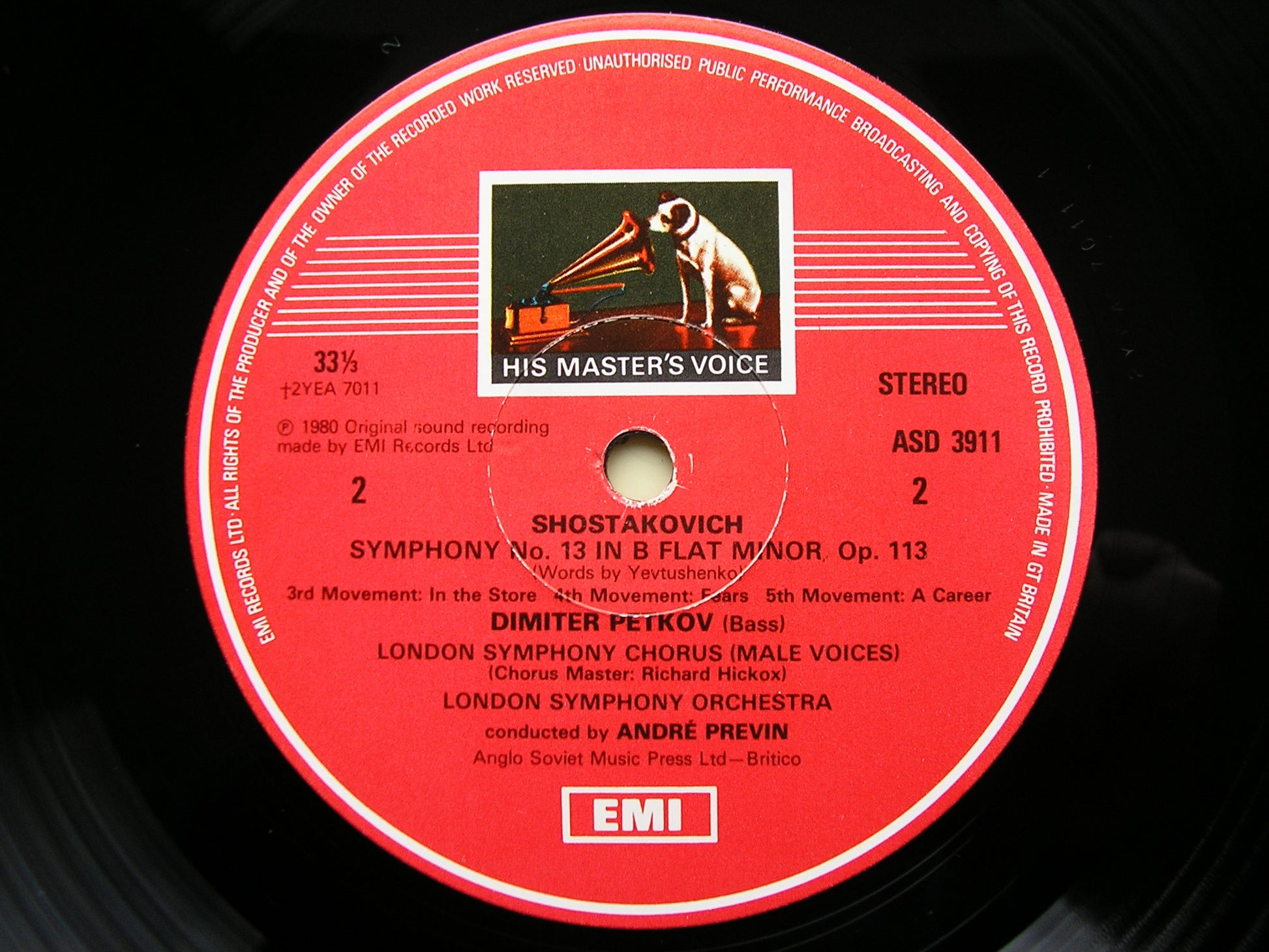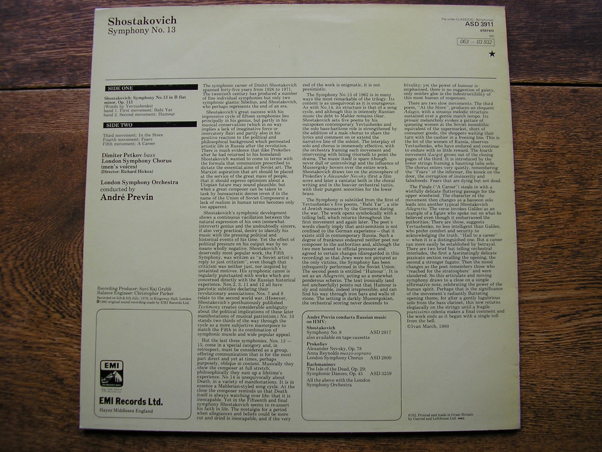 SHOSTAKOVICH: SYMPHONY No. 13 'Babi Yar' PREVIN / PETKOV / LONDON SYMPHONY ASD 3911