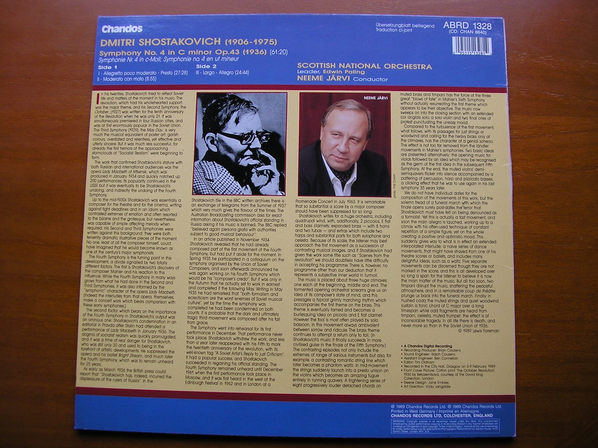 SHOSTAKOVICH: SYMPHONY No. 4 NEEME JARVI / SCOTTISH NATIONAL ORCHESTRA ABRD 1328