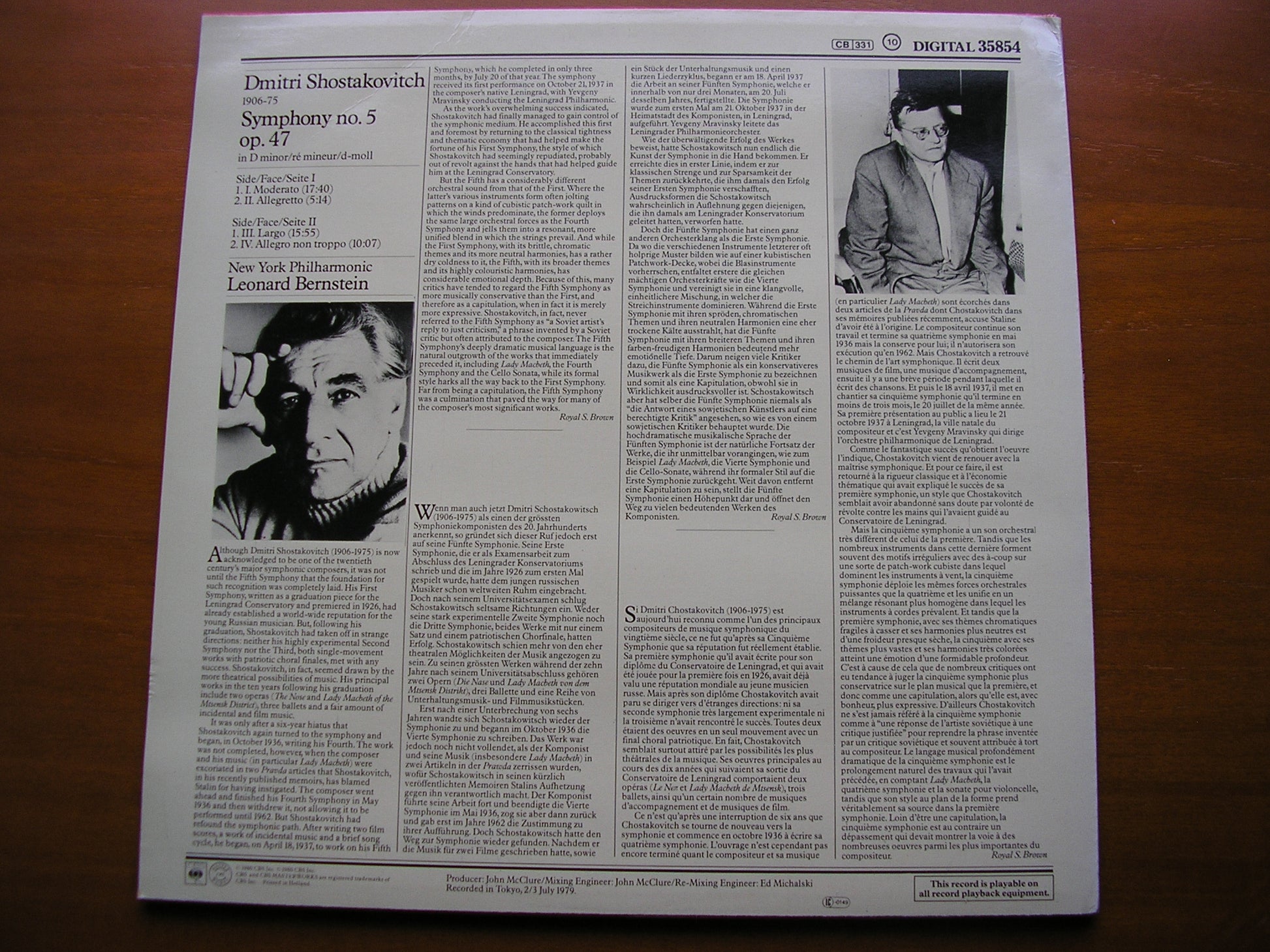 35854  SHOSTAKOVICH: SYMPHONY No. 5     LEONARD BERNSTEIN / NEW YORK PHILHARMONIC ORCHESTRA
