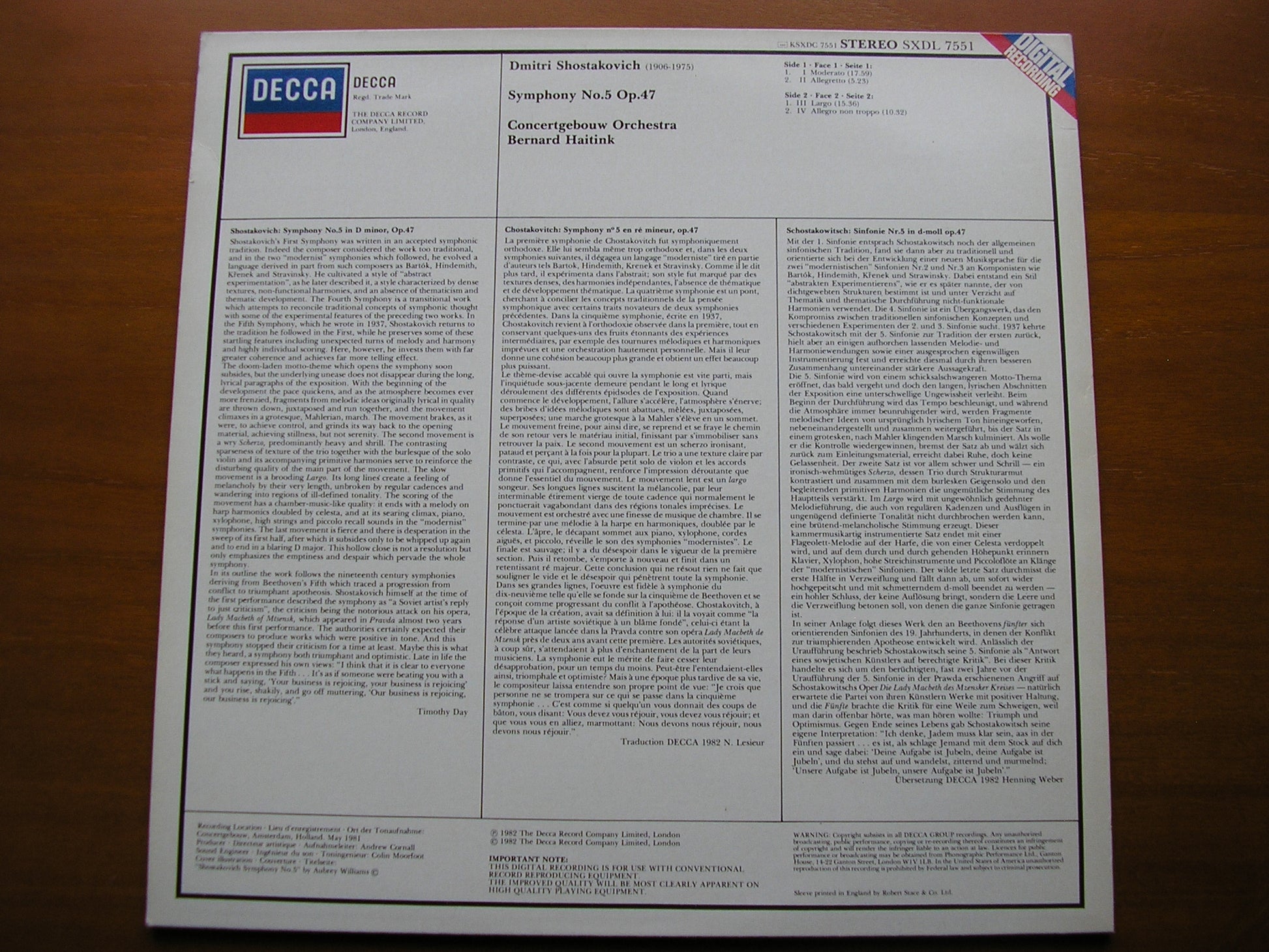 SXDL 7551  SHOSTAKOVICH: SYMPHONY No. 5      BERNARD HAITINK / CONCERTGEBOUW ORCHESTRA AMSTERDAM