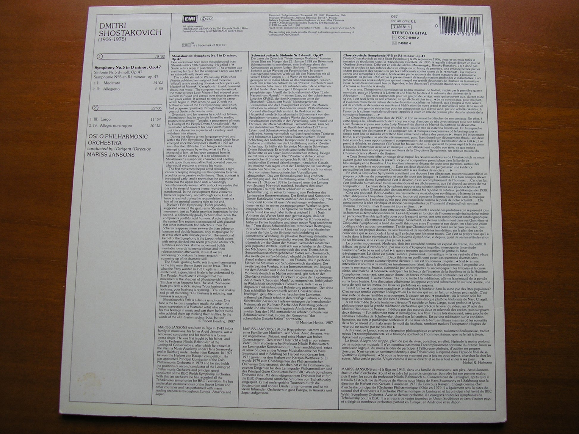 SHOSTAKOVICH: SYMPHONY No. 5 MARISS JANSONS / OSLO PHILHARMONIC 7 49181