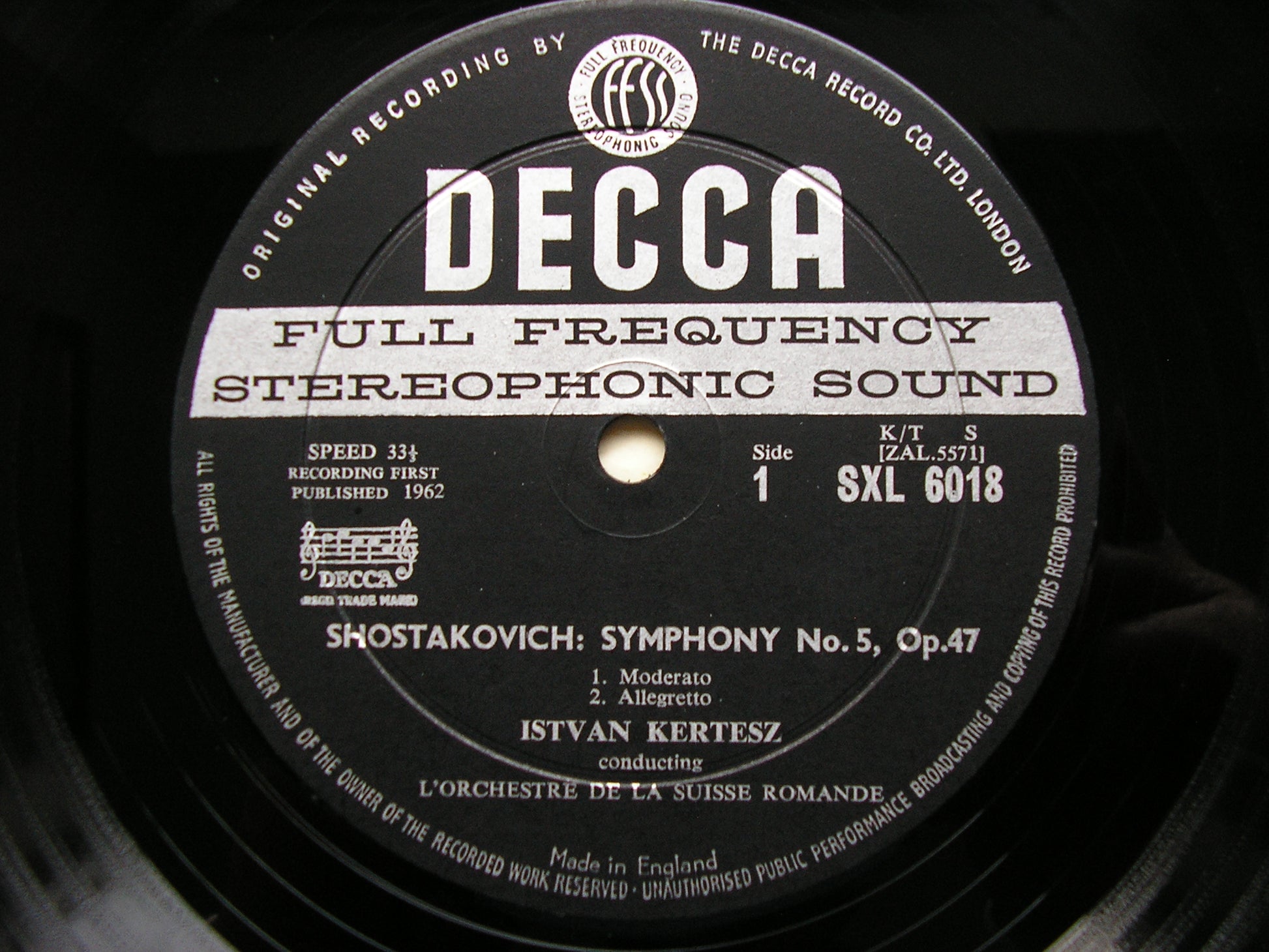 SXL 6018  SHOSTAKOVICH: SYMPHONY No. 5     ISTVAN KERTESZ / SUISSE ROMANDE ORCHESTRA