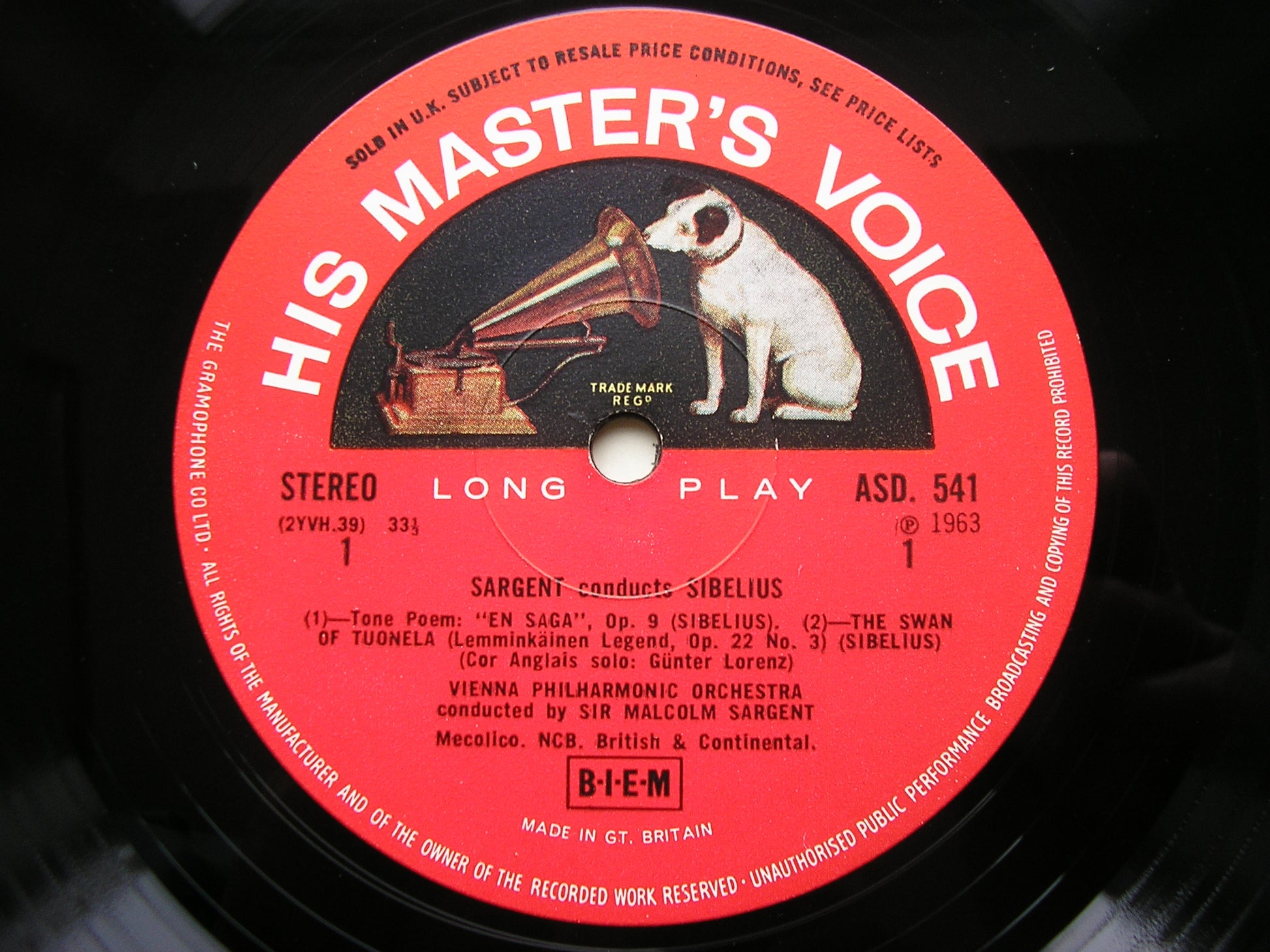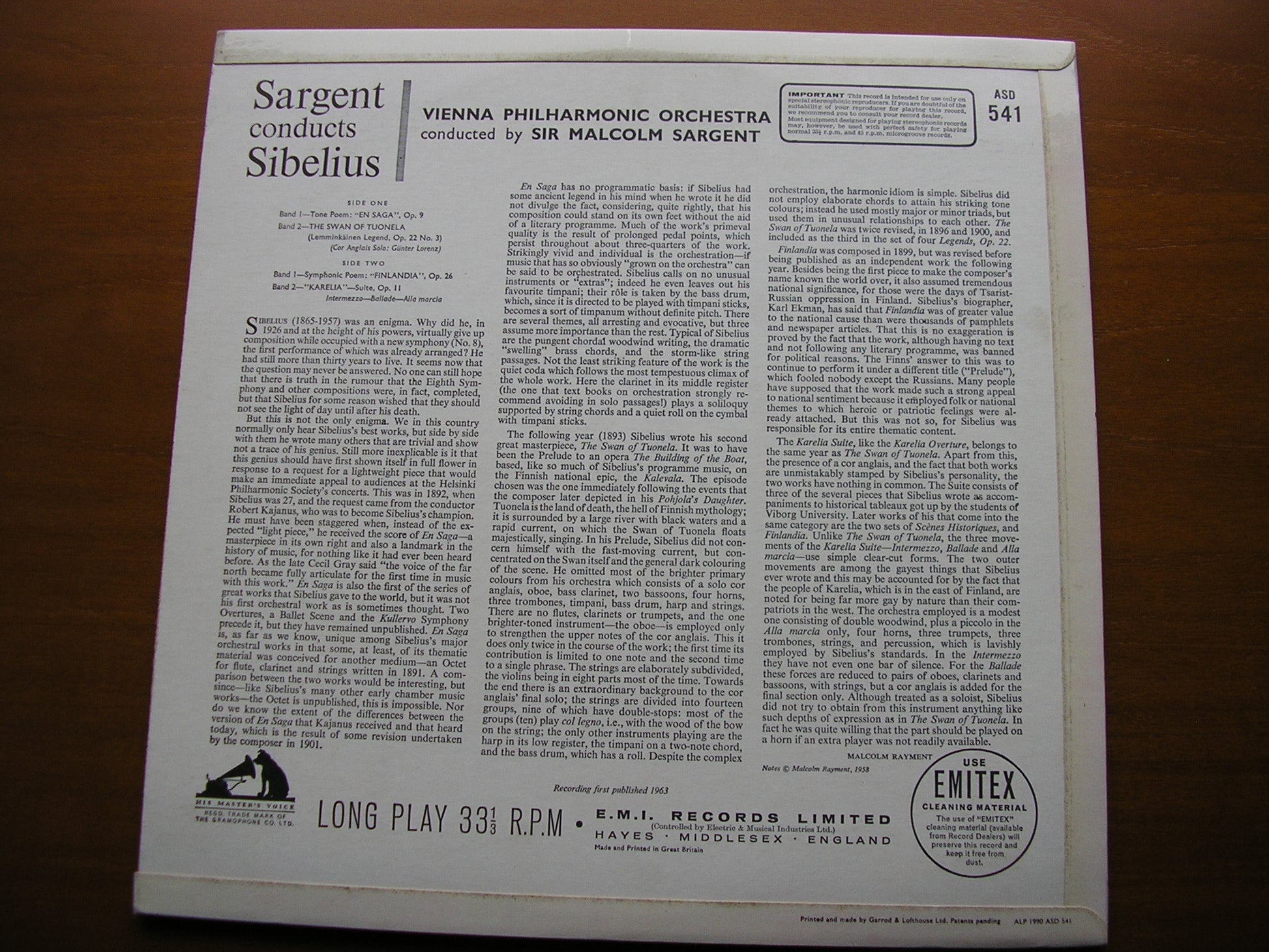 ASD 541  SIBELIUS: ORCHESTRAL WORKS    SIR MALCOLM SARGENT / VIENNA PHILHARMONIC ORCHESTRA