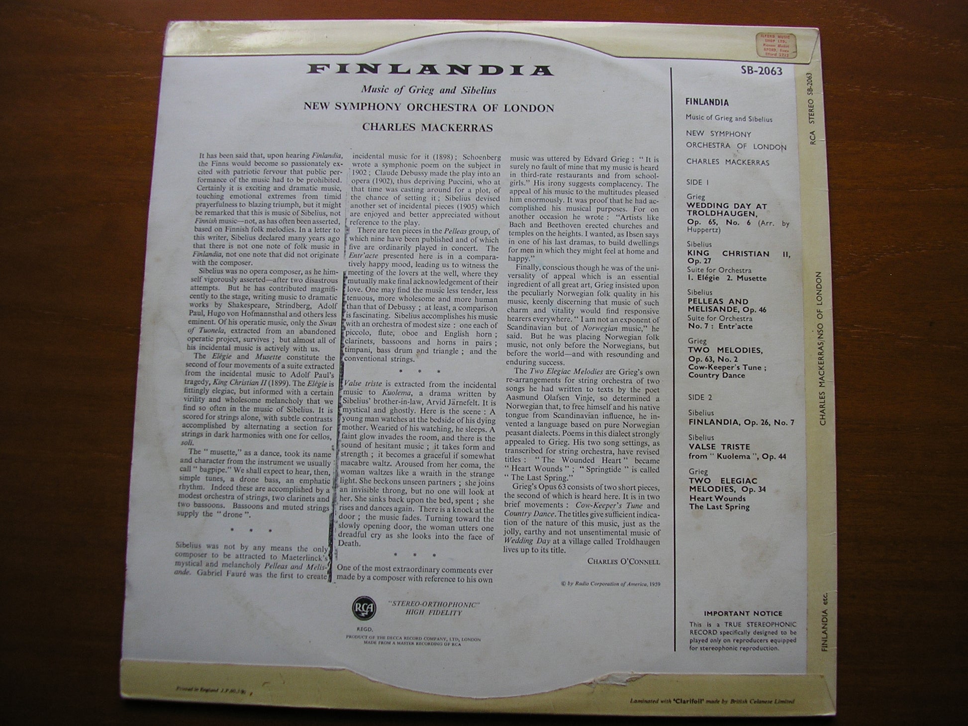 SB 2063  SIBELIUS & GRIEG: ORCHESTRAL WORKS    CHARLES MACKERRAS / NEW SYMPHONY ORCHESTRA OF LONDON