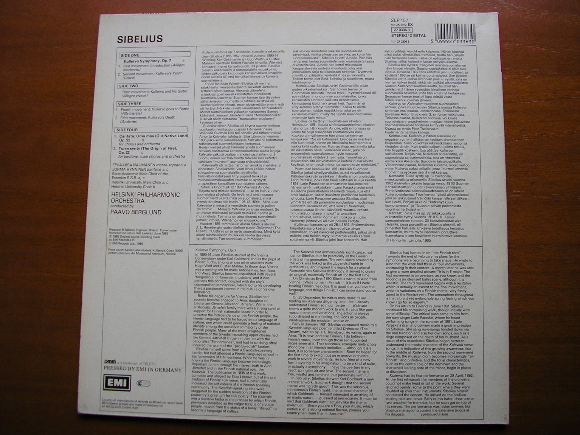 27 03363  SIBELIUS: KULLERVO / THE ORIGIN OF FIRE / OUR NATIVE LAND     SOLOISTS / HELSINKI PHILHARMONIC ORCHESTRA / PAAVO BERGLUND