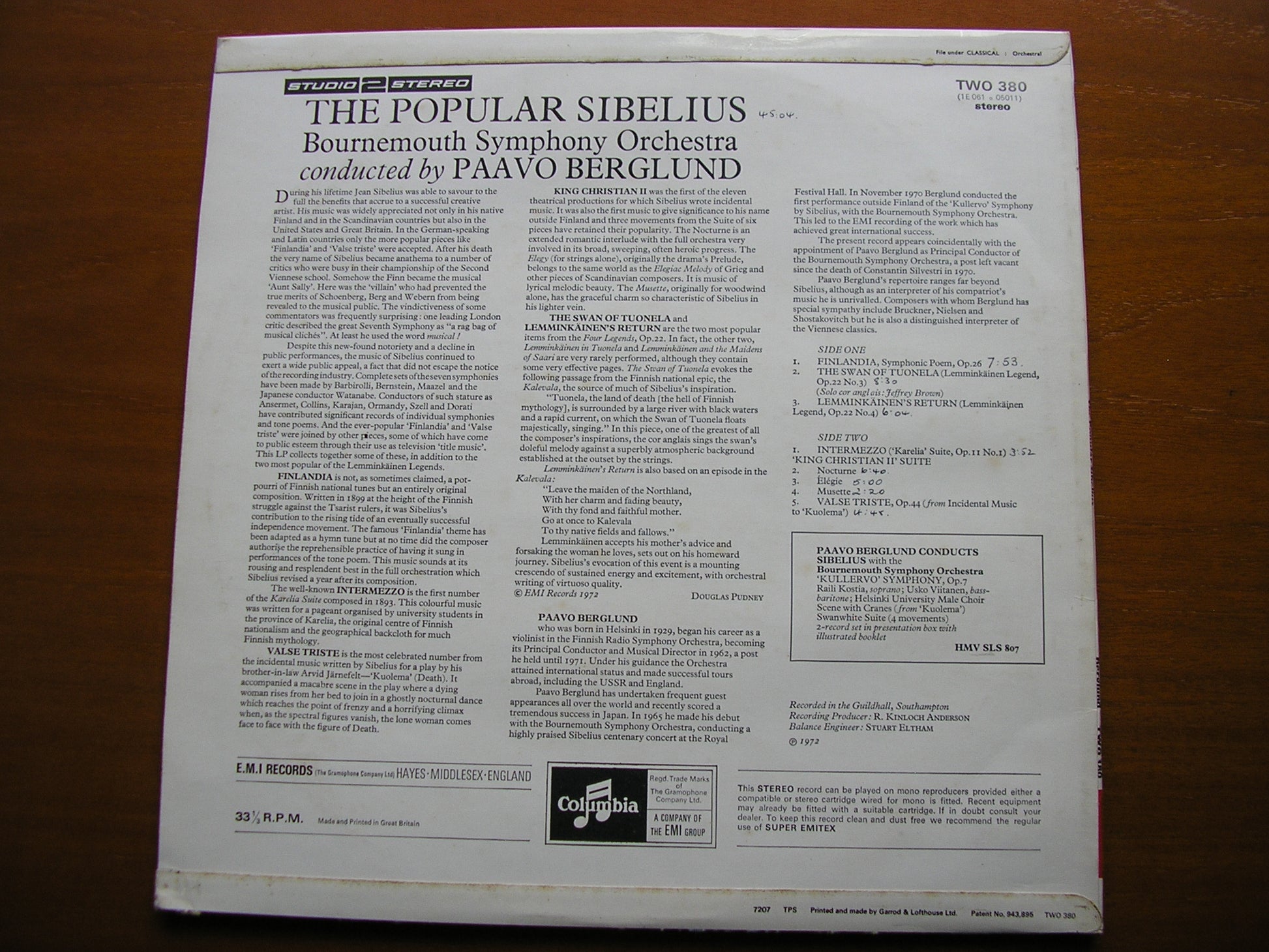 TWO 380  SIBELIUS: ORCHESTRAL WORKS    PAAVO BERGLUND / BOURNEMOUTH SYMPHONY ORCHESTRA