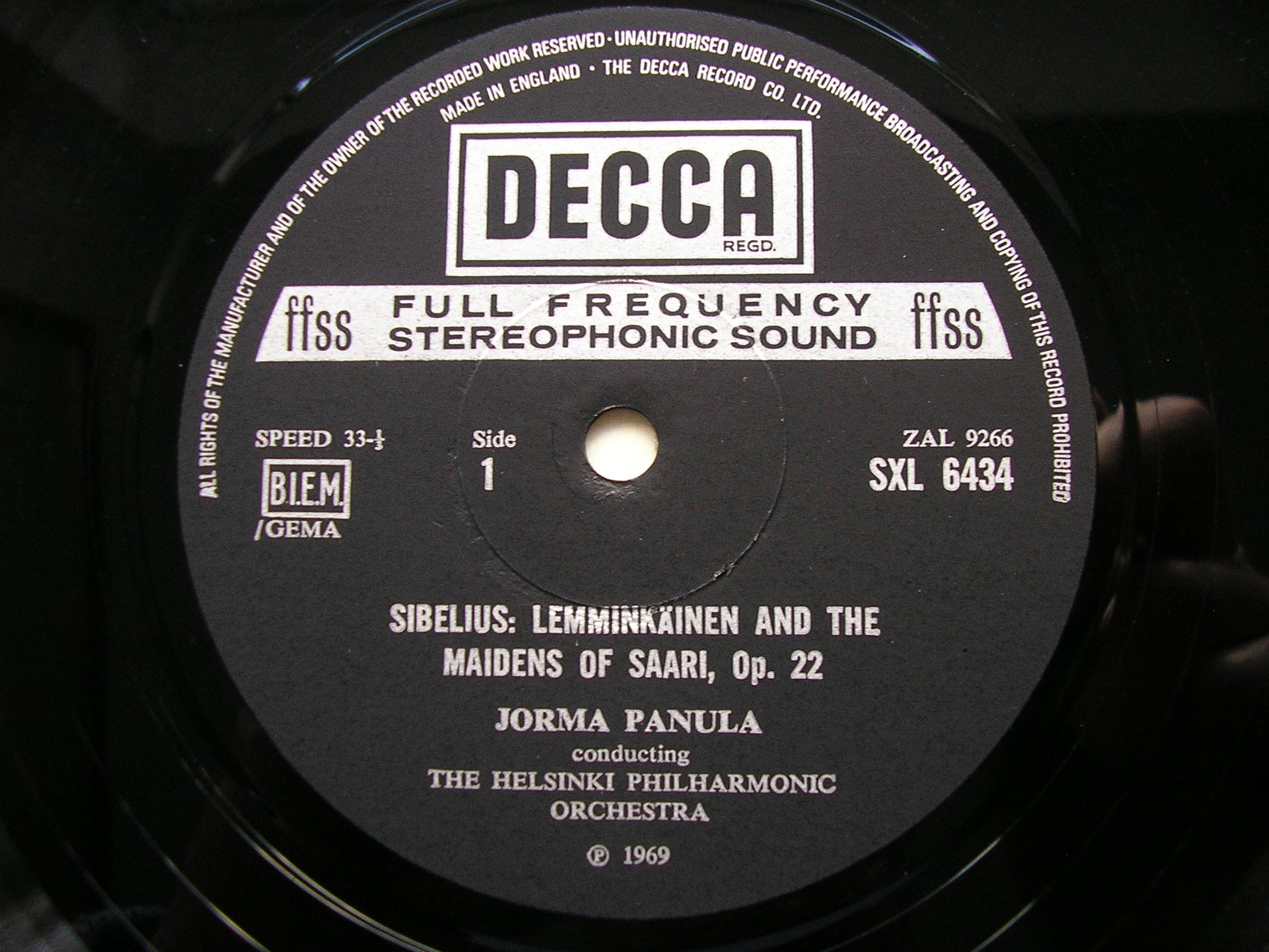 SXL 6434  SIBELIUS: ORCHESTRAL WORKS / BERGMAN: AUBADE    JORMA PANULA / HELSINKI PHILHARMONIC ORCHESTRA