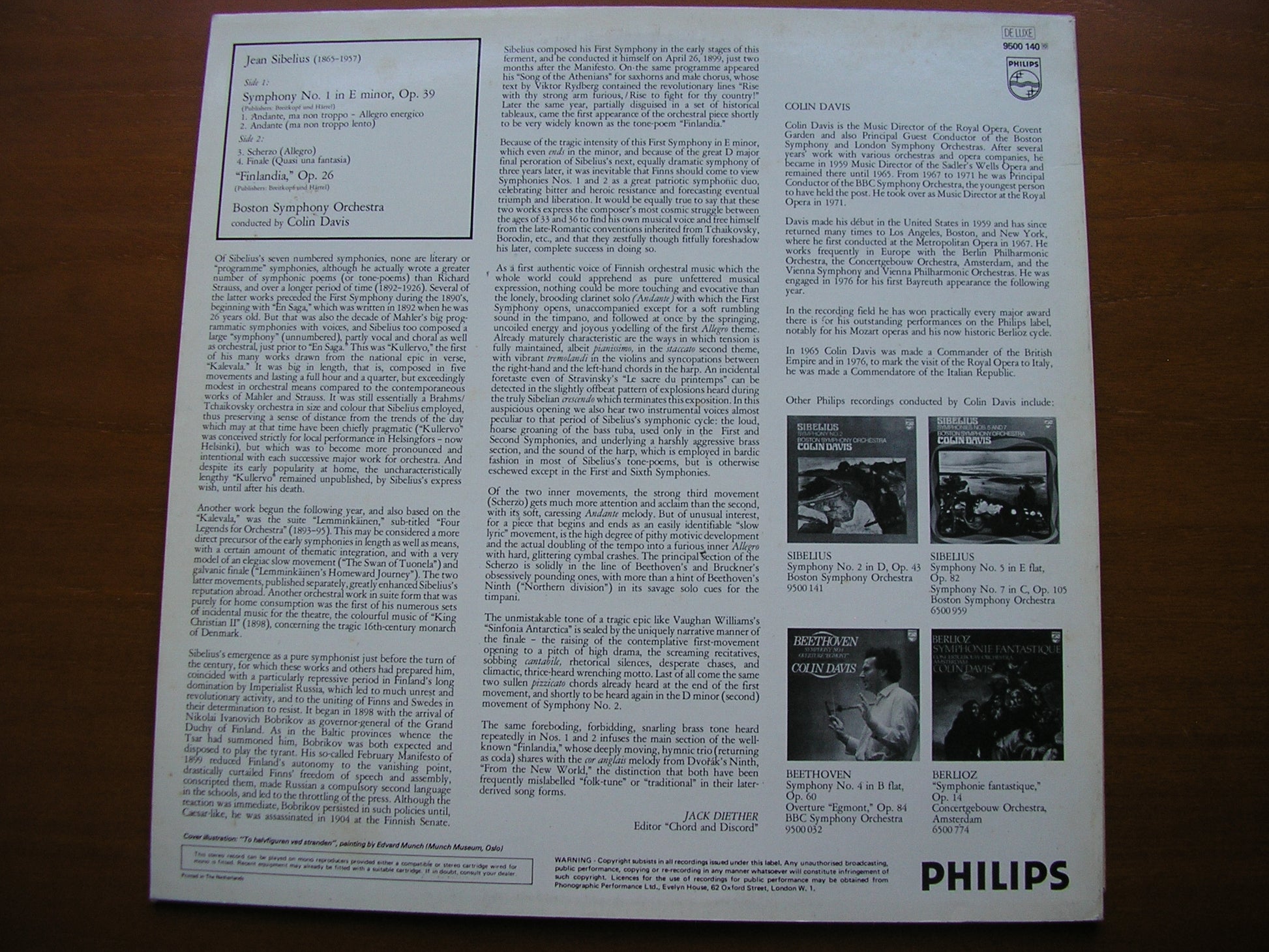 SIBELIUS: SYMPHONY No. 1 / FINLANDIA DAVIS / BOSTON SYMPHONY 9500 140