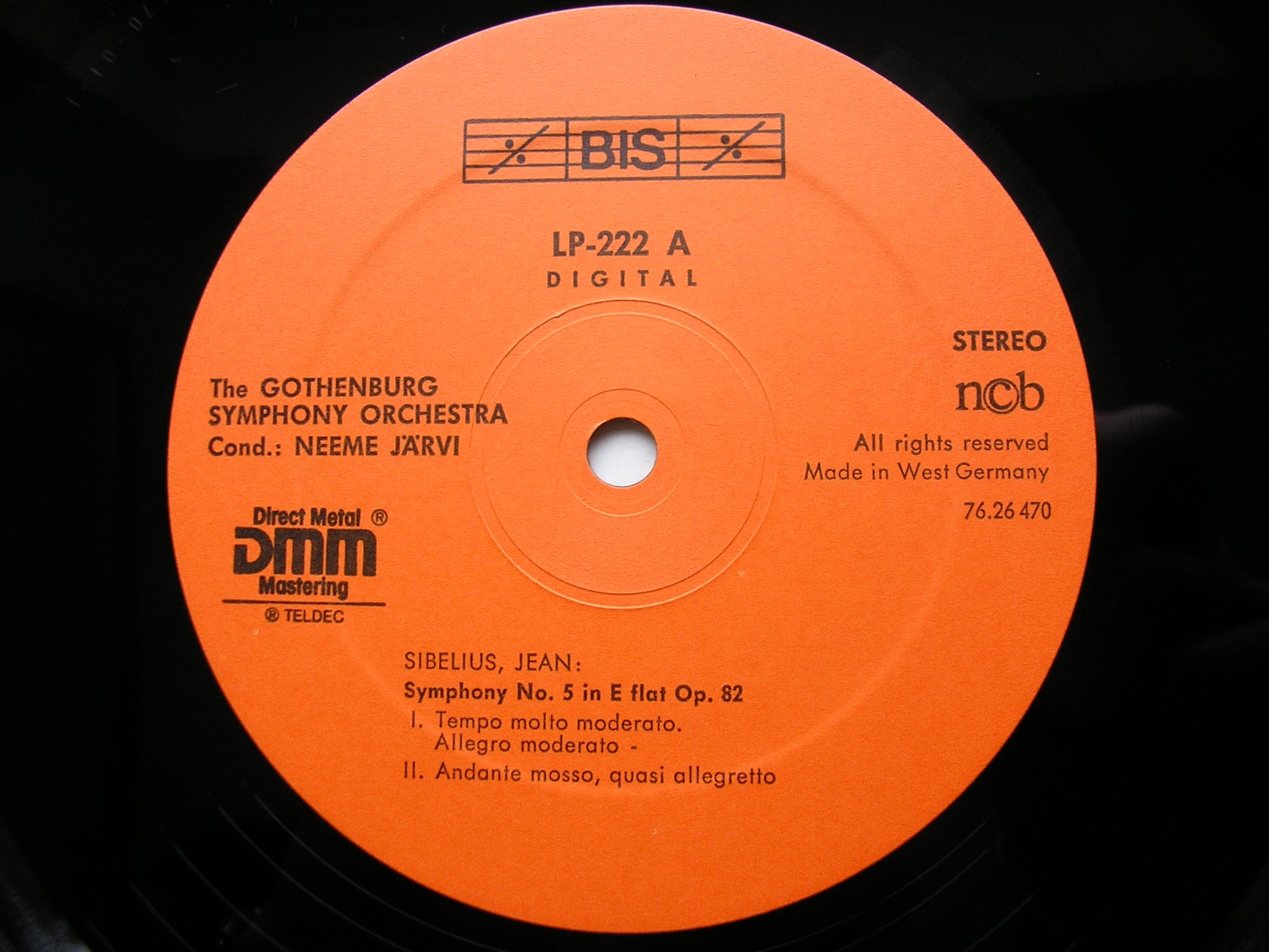 BIS LP 222  SIBELIUS: SYMPHONY No. 5 / ANDANTE FESTIVO / KARELIA OVERTURE     NEEME JARVI / GOTHENBURG SYMPHONY ORCHESTRA