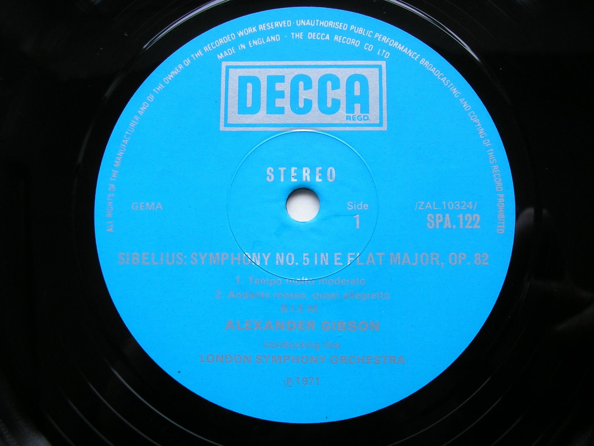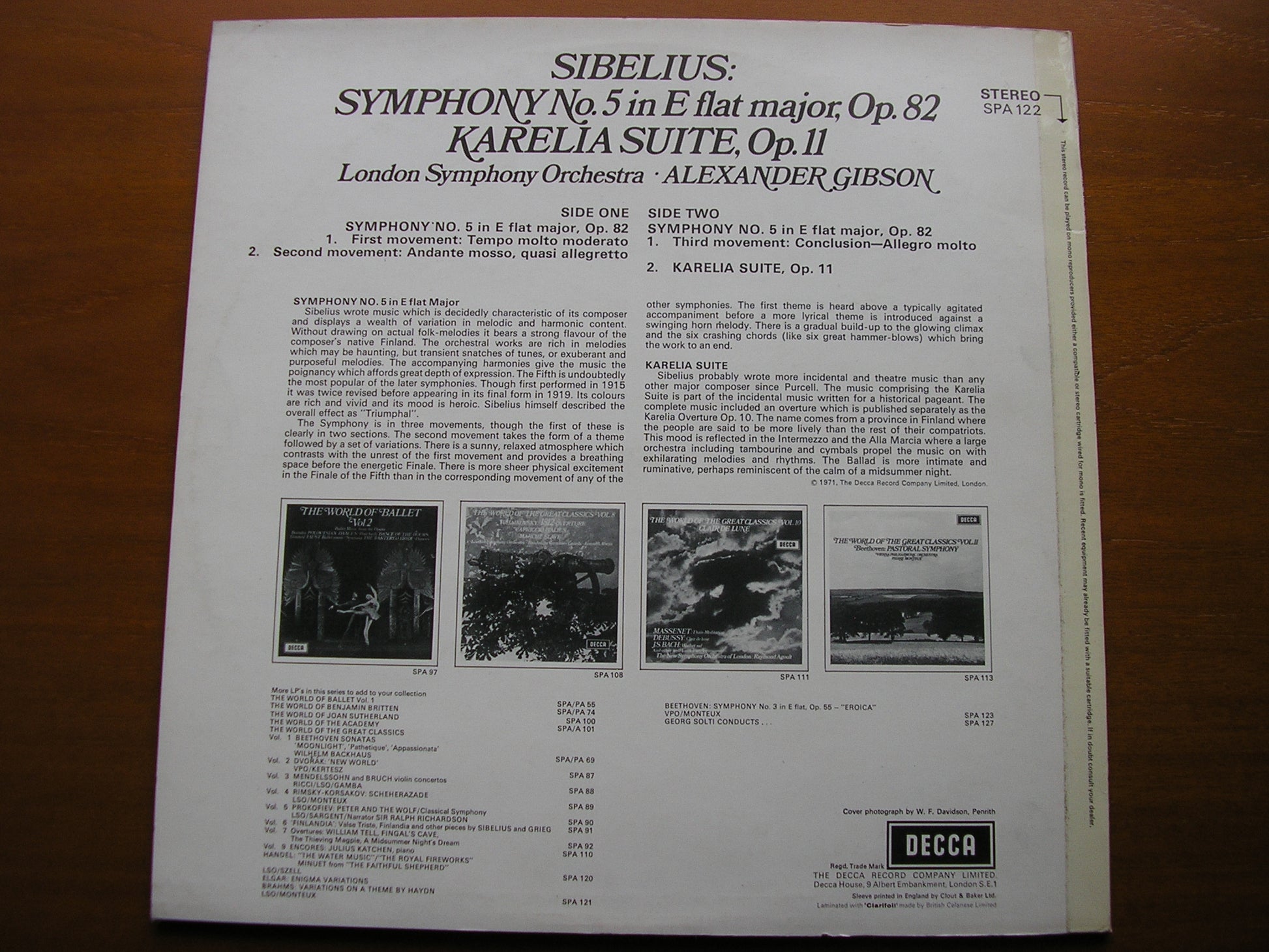 SPA 122  SIBELIUS: SYMPHONY No. 5 / KARELIA SUITE       ALEXANDR GIBSON / LONDON SYMPHONY ORCHESTRA