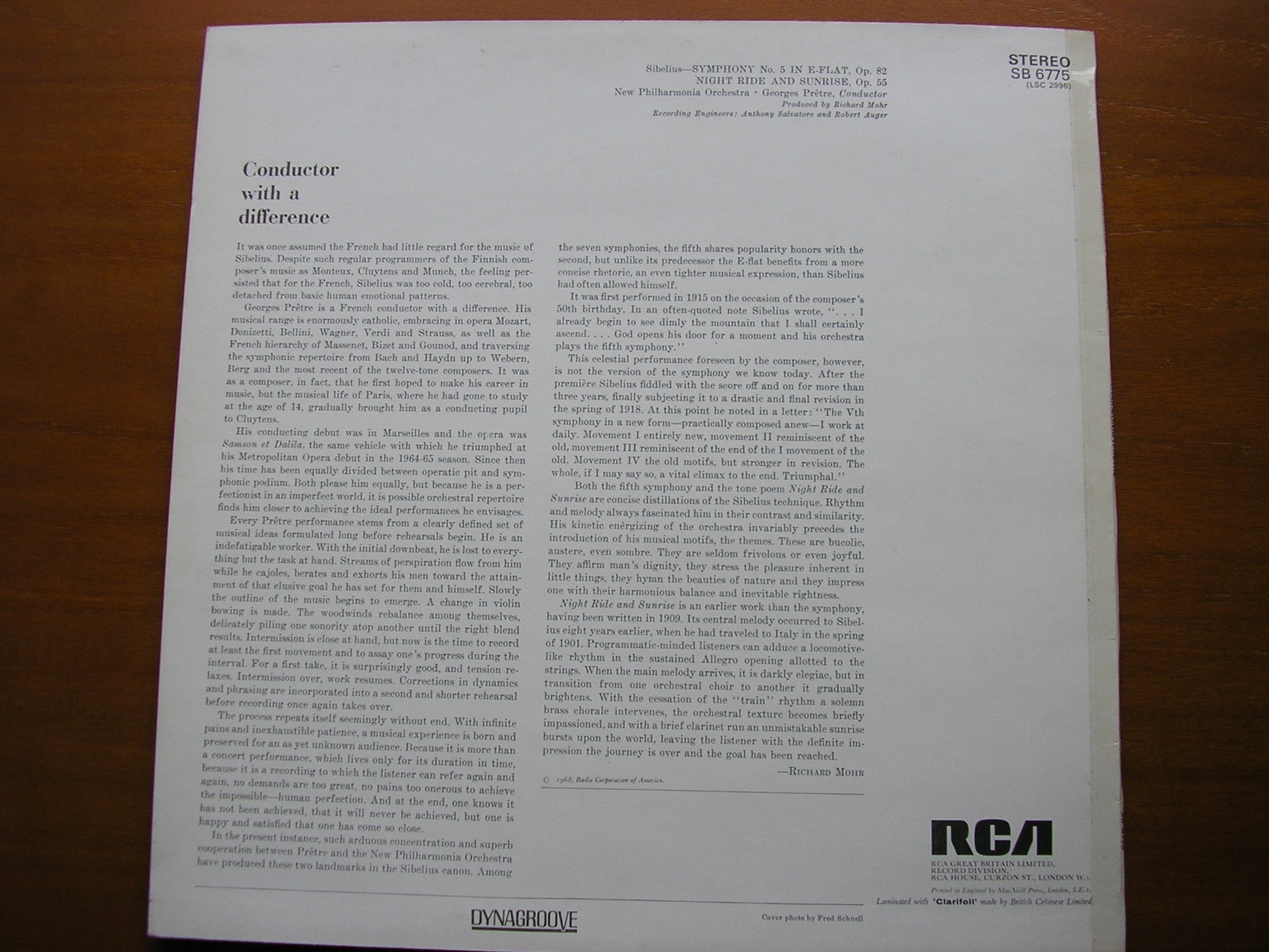SB 6775  SIBELIUS: SYMPHONY No. 5 / NIGHT RIDE & SUNRISE    GEORGES PRETRE / NEW PHILHARMONIA ORCHESTRA