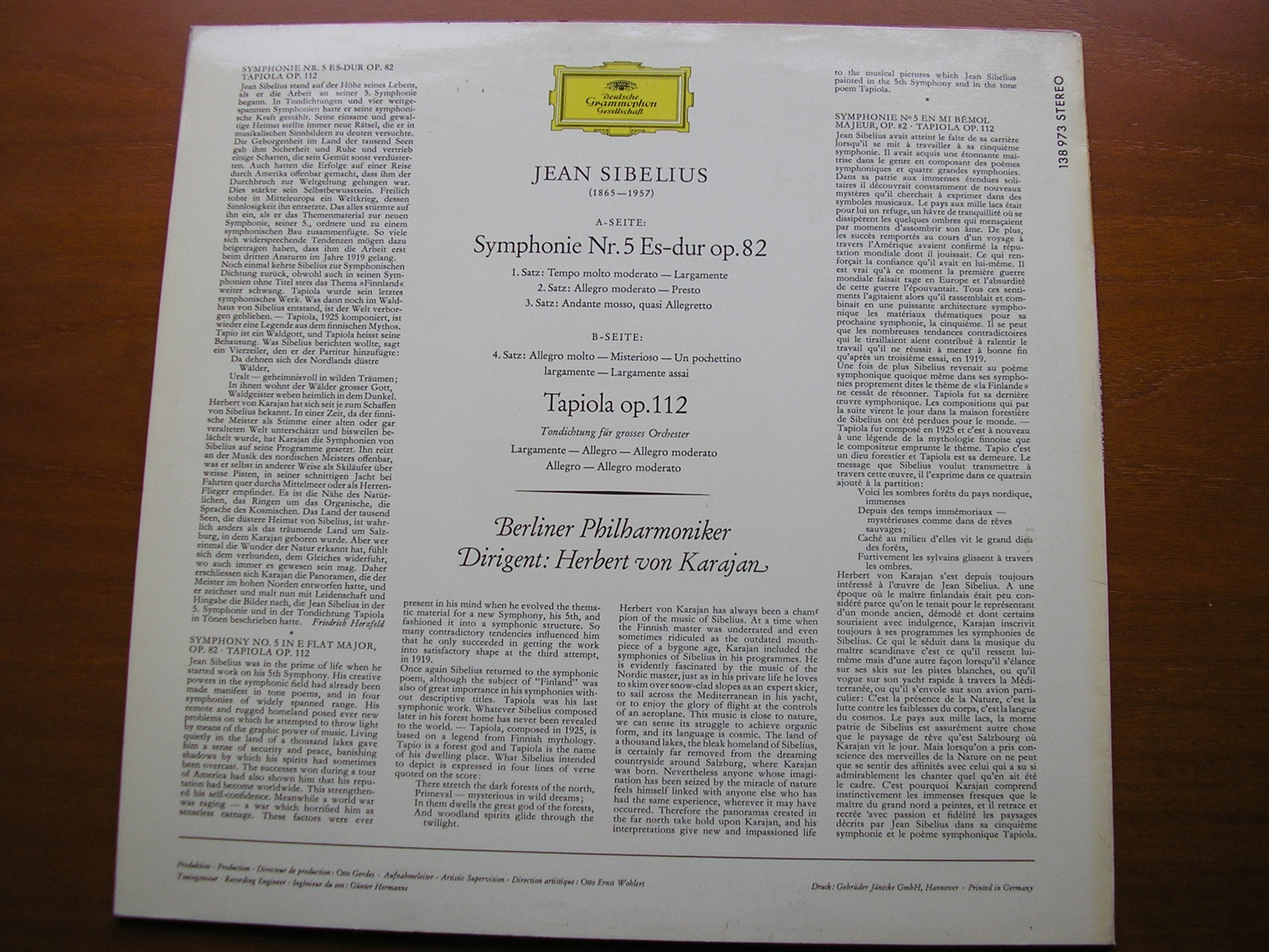 138 973  SIBELIUS: SYMPHONY No. 5 / TAPIOLA      HERBERT VON KARAJAN / BERLIN PHILHARMONIC ORCHESTRA