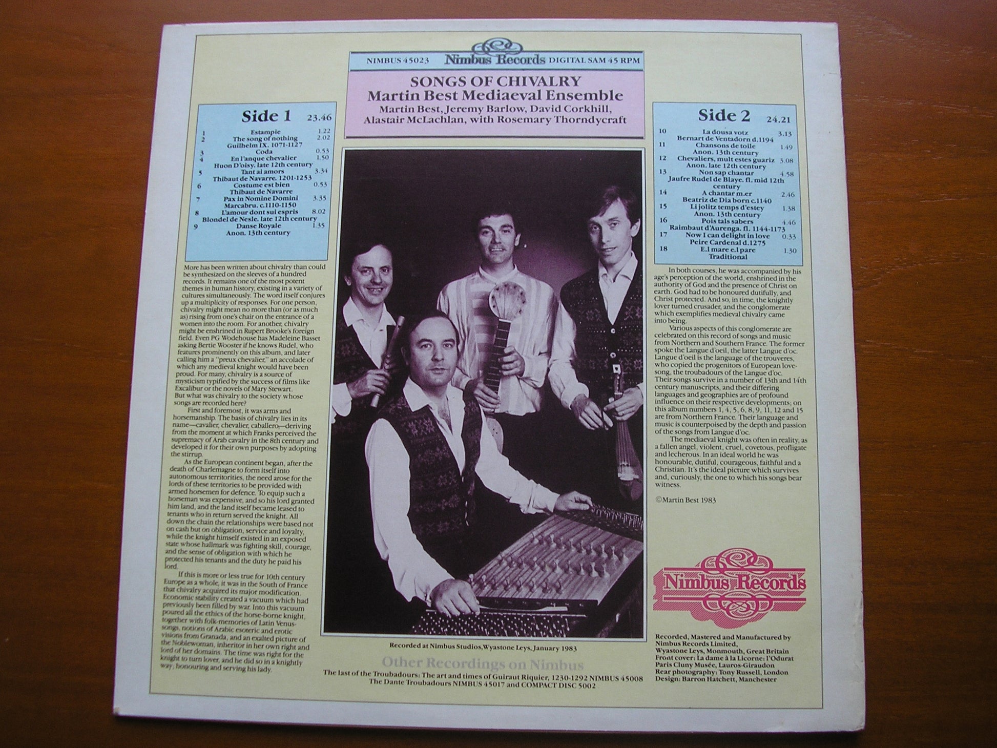 SONGS OF CHIVALRY MARTIN BEST MEDIAEVAL ENSEMBLE NIMBUS 45023