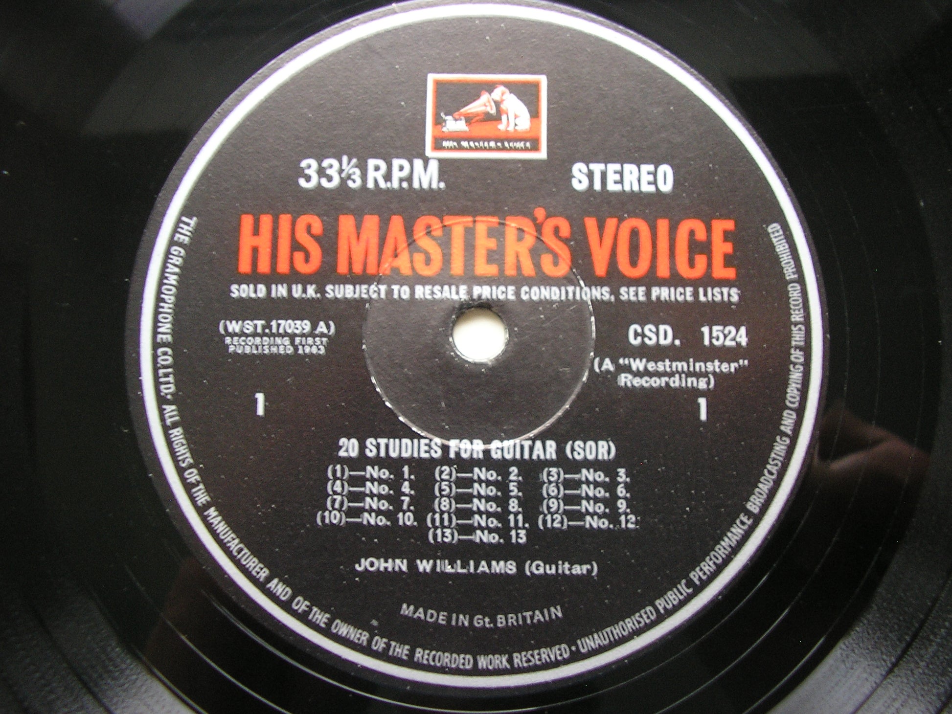 SOR: 20 STUDIES FOR GUITAR JOHN WILLIAMS CSD 1524