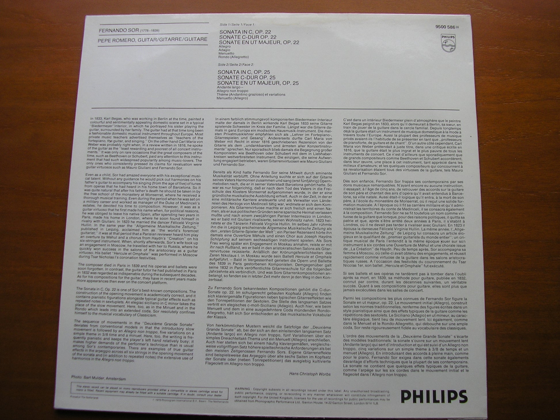 9500 586  FERNANDO SOR: GUITAR SONATAS Op. 22 & 25     PEPE ROMERO