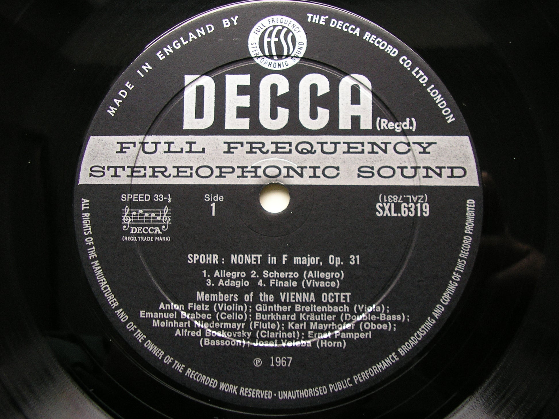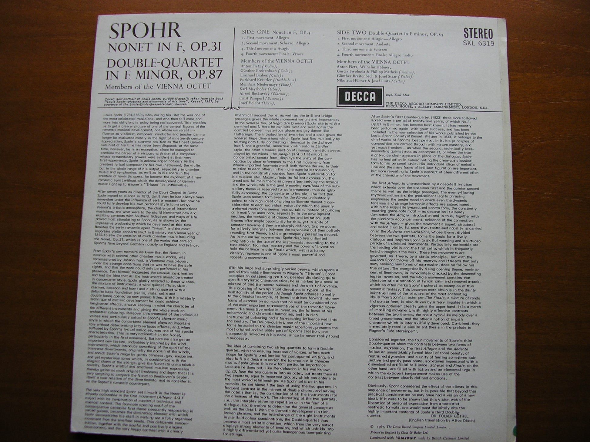 SXL 6319  SPOHR: NONET in F / DOUBLE QUARTET in E    MEMBERS OF THE VIENNA OCTET