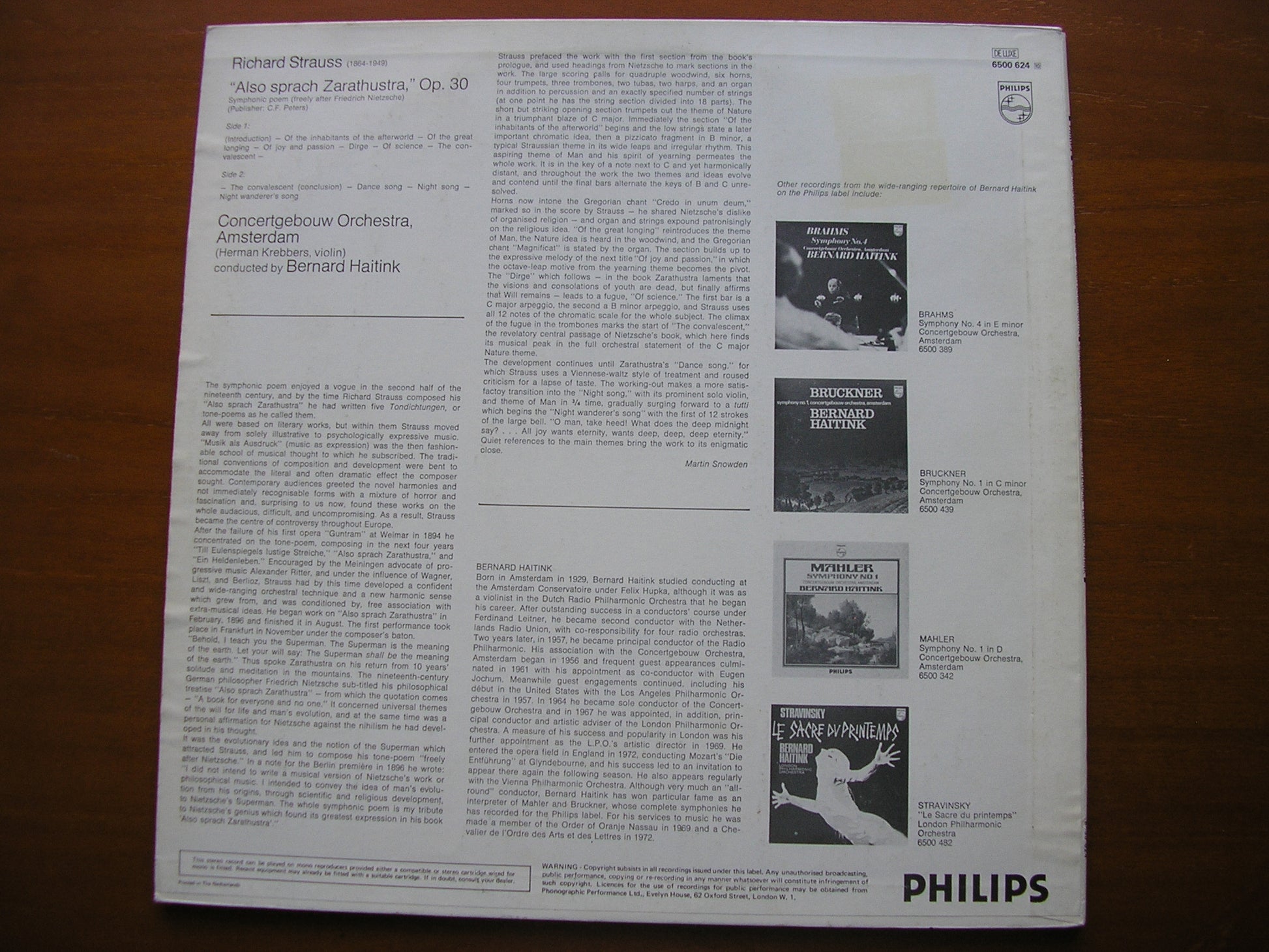 6500 624  STRAUSS: ALSO SPRACH ZARATHUSTRA     BERNARD HAITINK / CONCERTGEBOUW ORCHESTRA AMSTERDAM