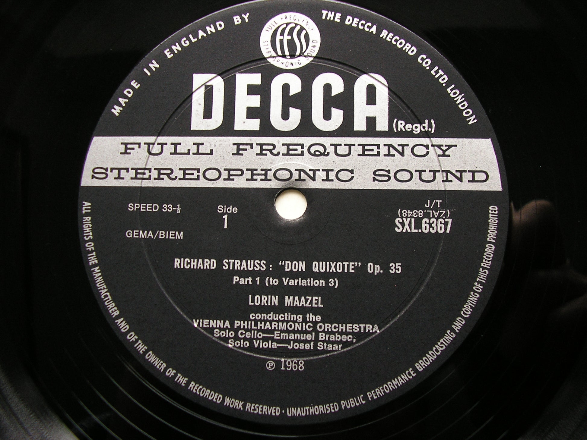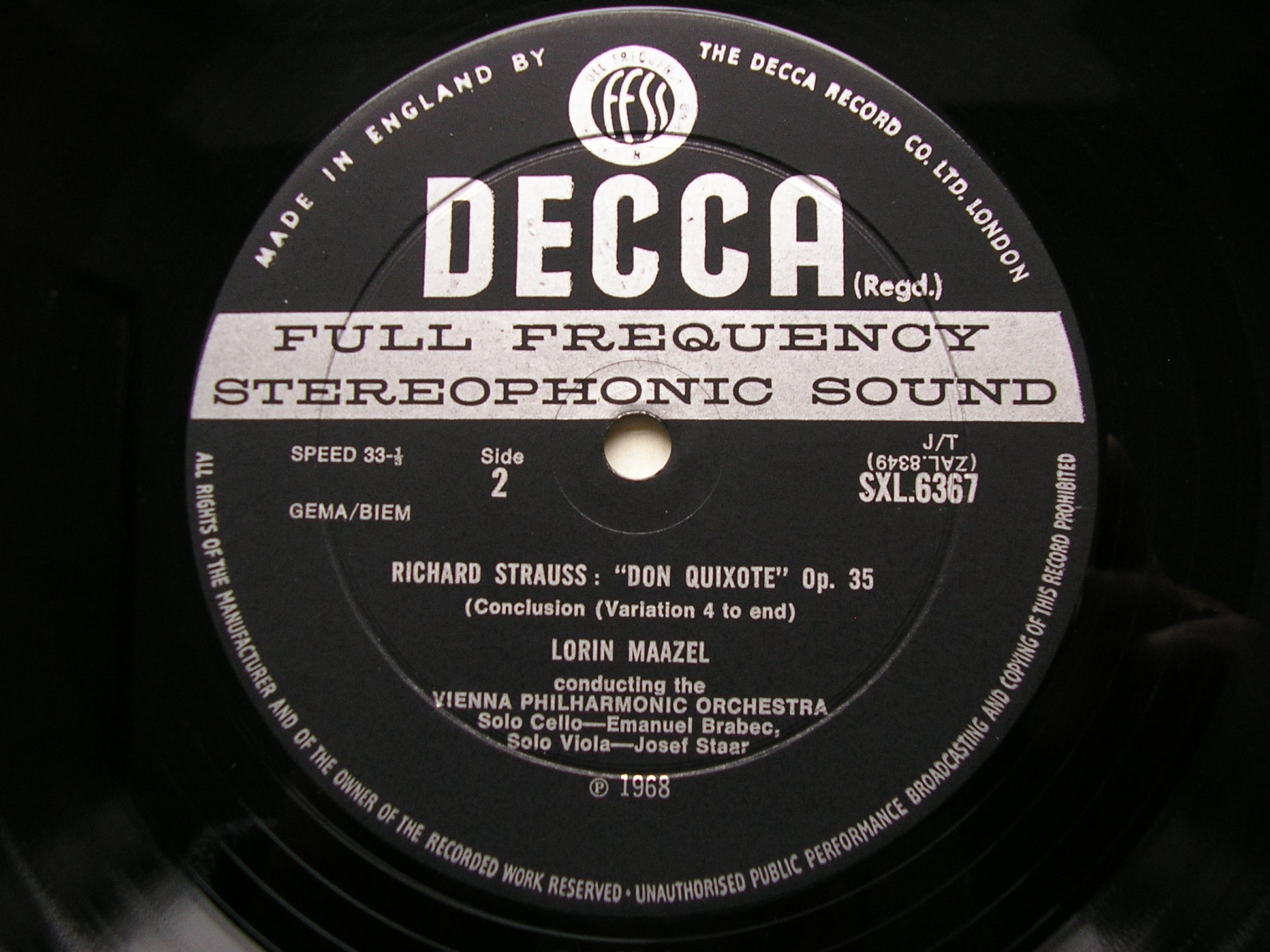 SXL 6367  STRAUSS: DON QUIXOTE     LORIN MAAZEL / VIENNA PHILHARMONIC ORCHESTRA