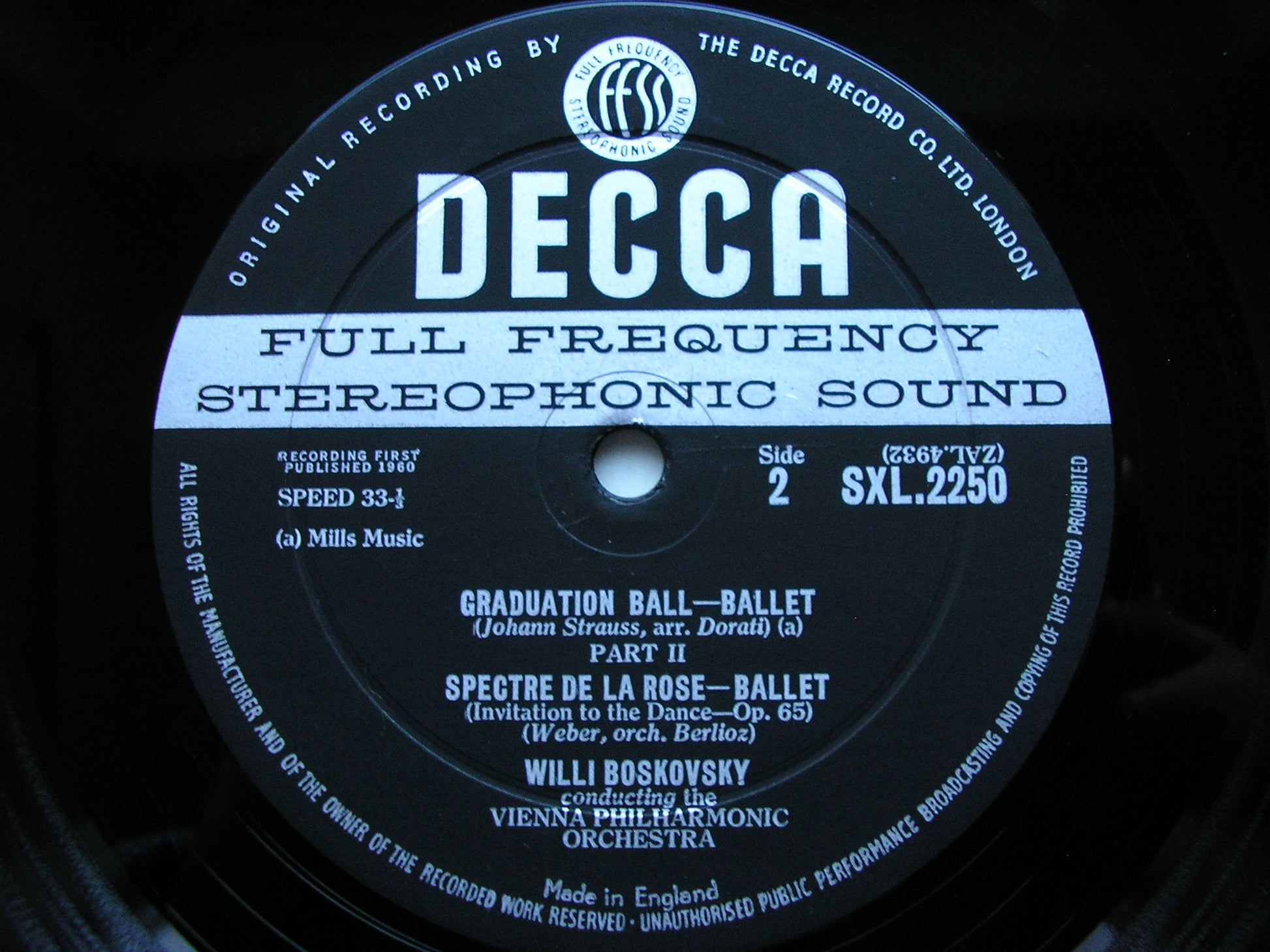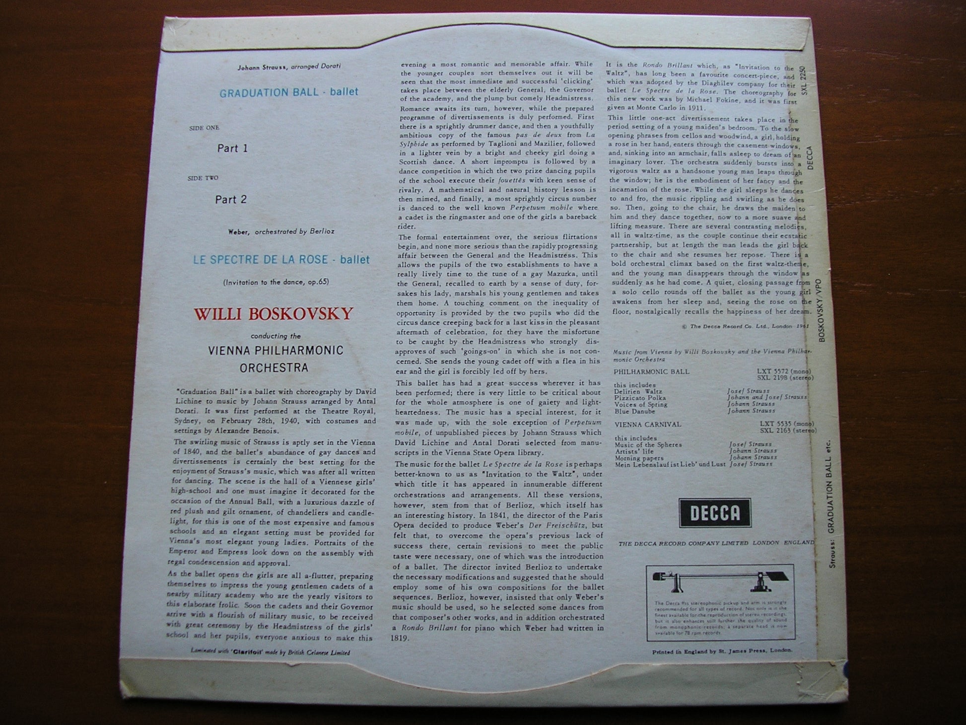 SXL 2250  STRAUSS: GRADUATION BALL / WEBER: LE SPECTRE DE LA ROSE    WILLI BOSKOVSKY / VIENNA PHILHARMONIC ORCHESTRA