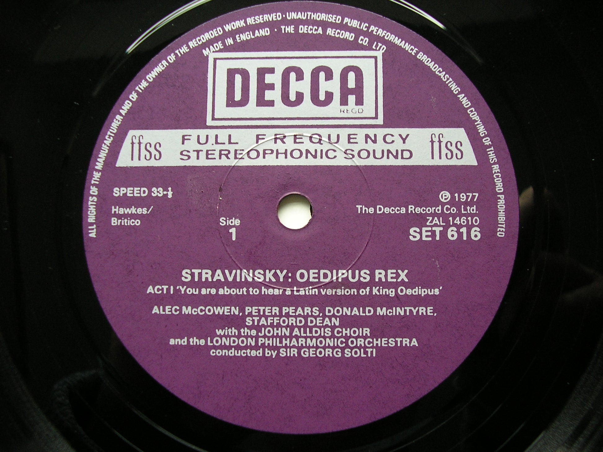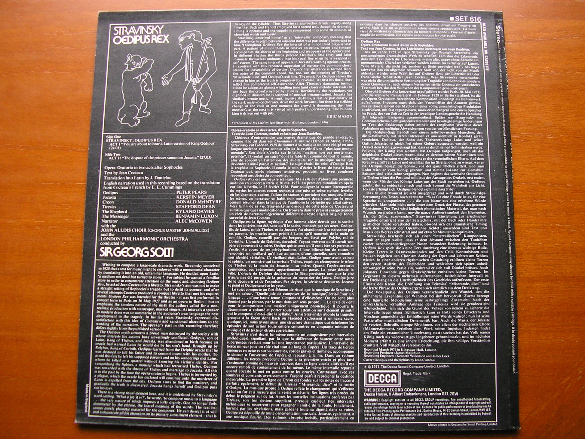 SET 616  STRAVINSKY: OEDIPUS REX   PETER PEARS / KERSTIN MEYER / LONDON PHILHARMONIC ORCHESTRA / SIR GEORG SOLTI