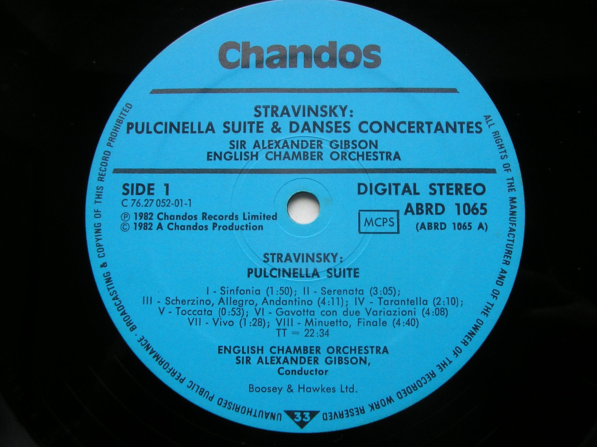 ABRD 1065  STRAVINSKY: PULCINELLA SUITE / DANSES CONCERTANTES    SIR ALEXANDER GIBSON / ENGLISH CHAMBER ORCHESTRA