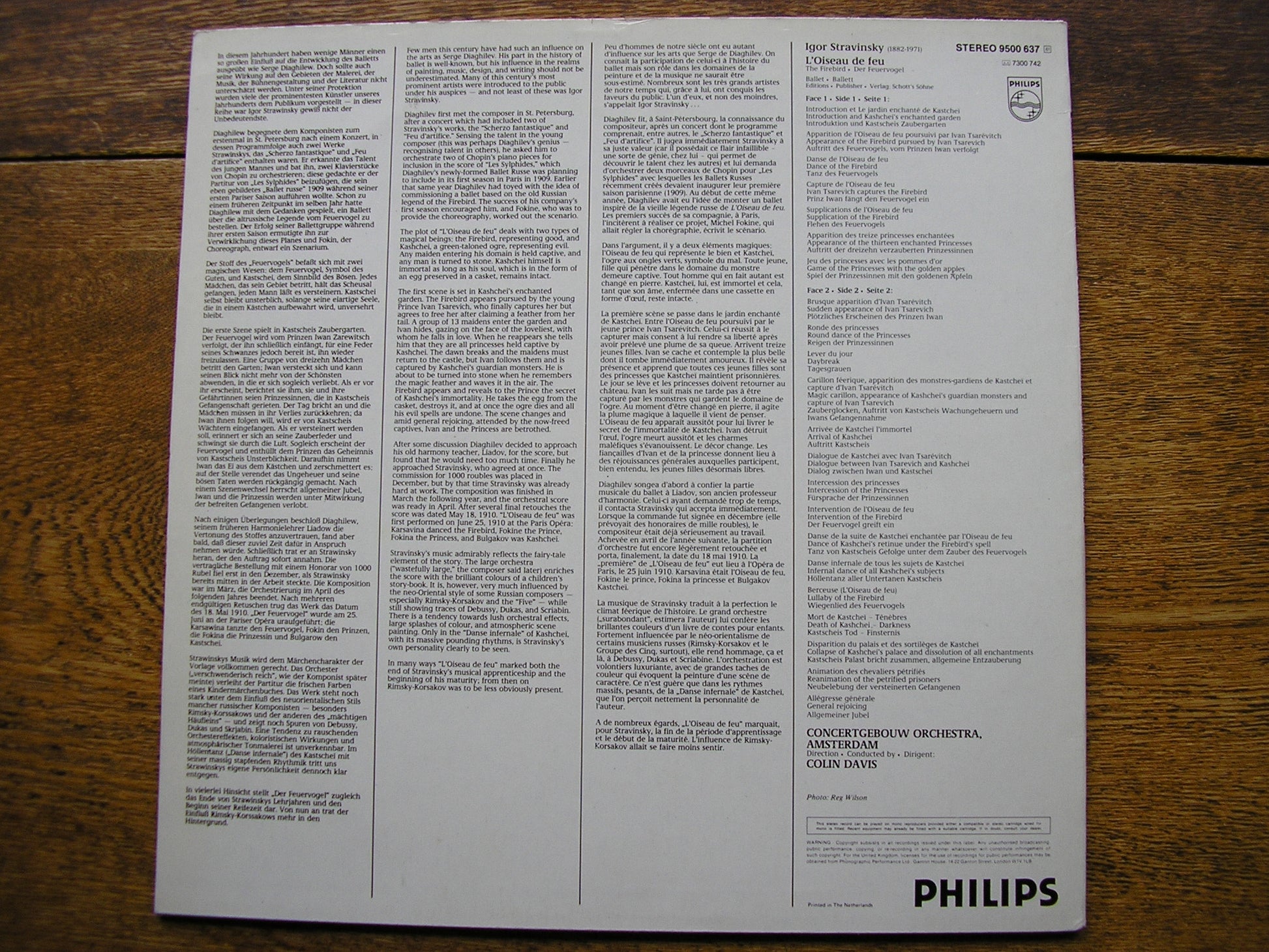9500 637  STRAVINSKY: THE FIREBIRD    COLIN DAVIS / CONCERTGEBOUW ORCHESTRA AMSTERDAM