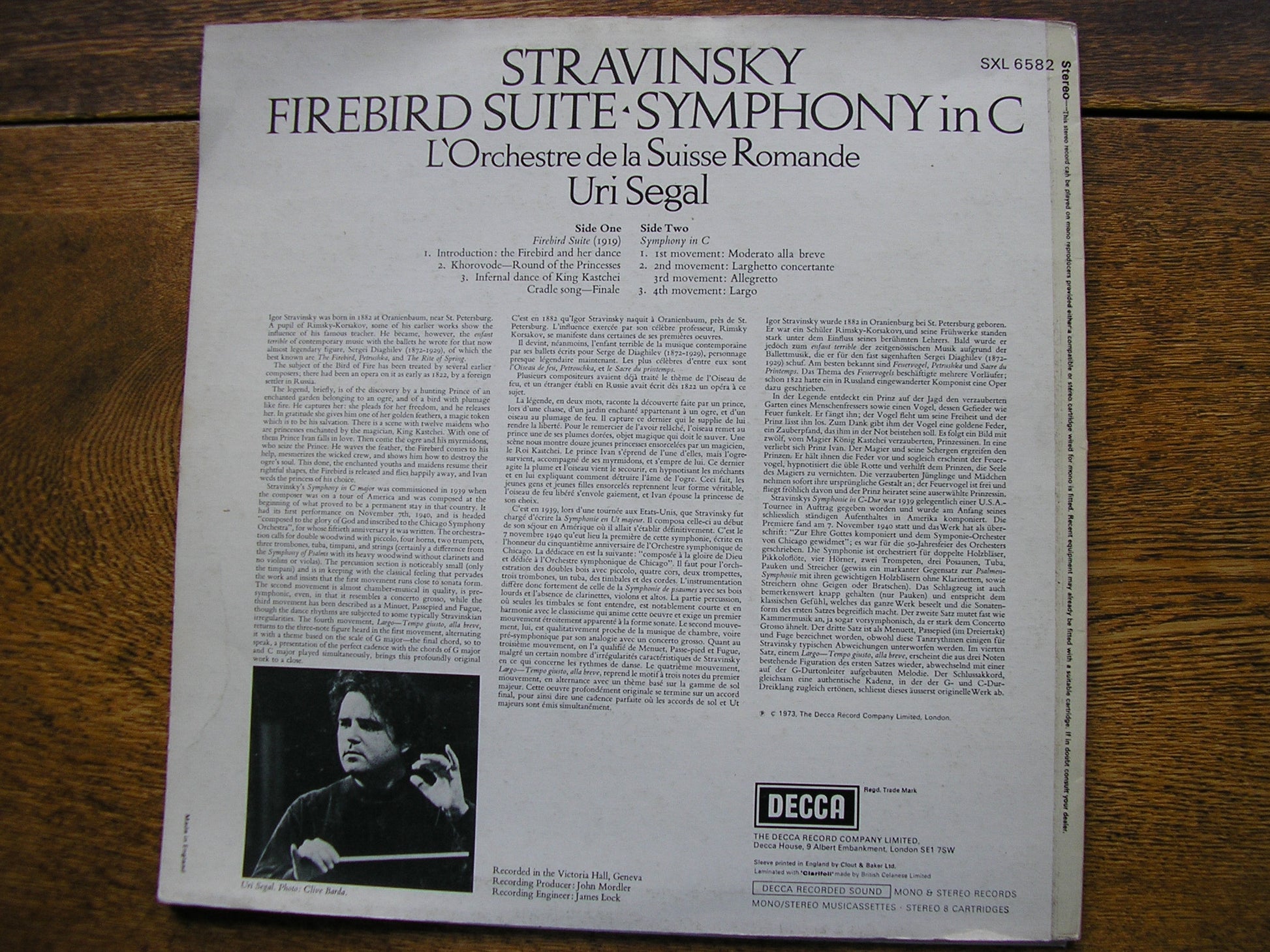SXL 6582  STRAVINSKY: THE FIREBIRD Suite (1919) / SYMPHONY in C   URI SEGAL / SUISSE ROMANDE ORCHESTRA