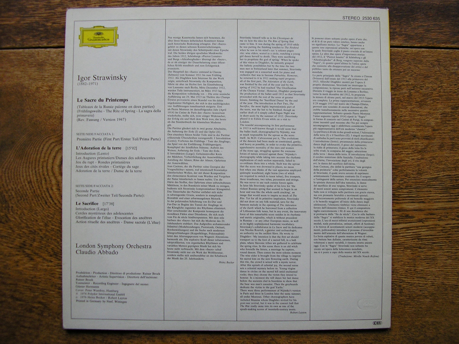 2530 635  STRAVINSKY: THE RITE OF SPRING  CLAUDIO ABBADO / LONDON SYMPHONY ORCHESTRA