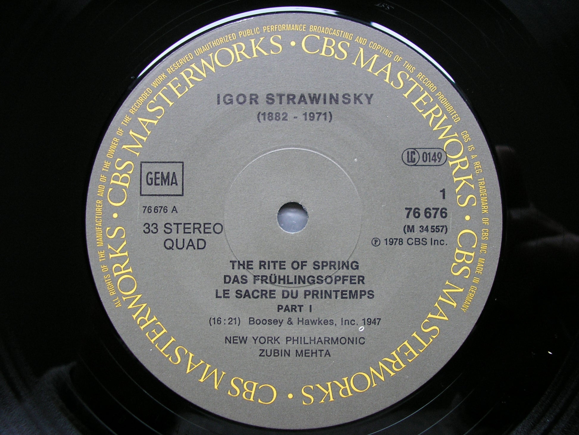 76676  STRAVINSKY: THE RITE OF SPRING   ZUBIN MEHTA / NEW YORK PHILHARMOP)NIC ORCHESTRA