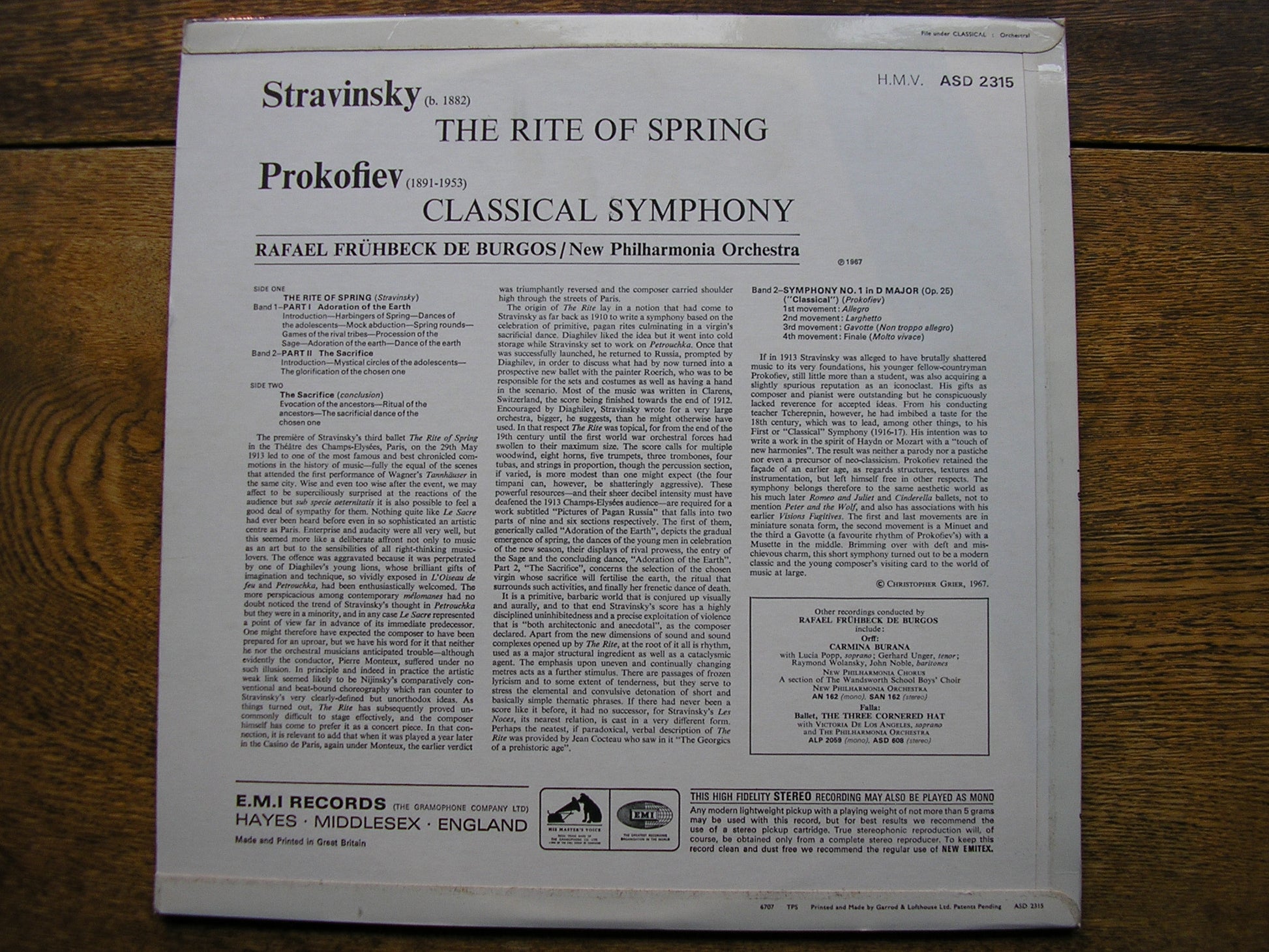 ASD 2315  STRAVINSKY: THE RITE OF SPRING / PROKOFIEV: CLASSICAL SYMPHONY   RAFAEL FRUHBECK DE BURGOS / NEW PHILHARMONIA ORCHESTRA