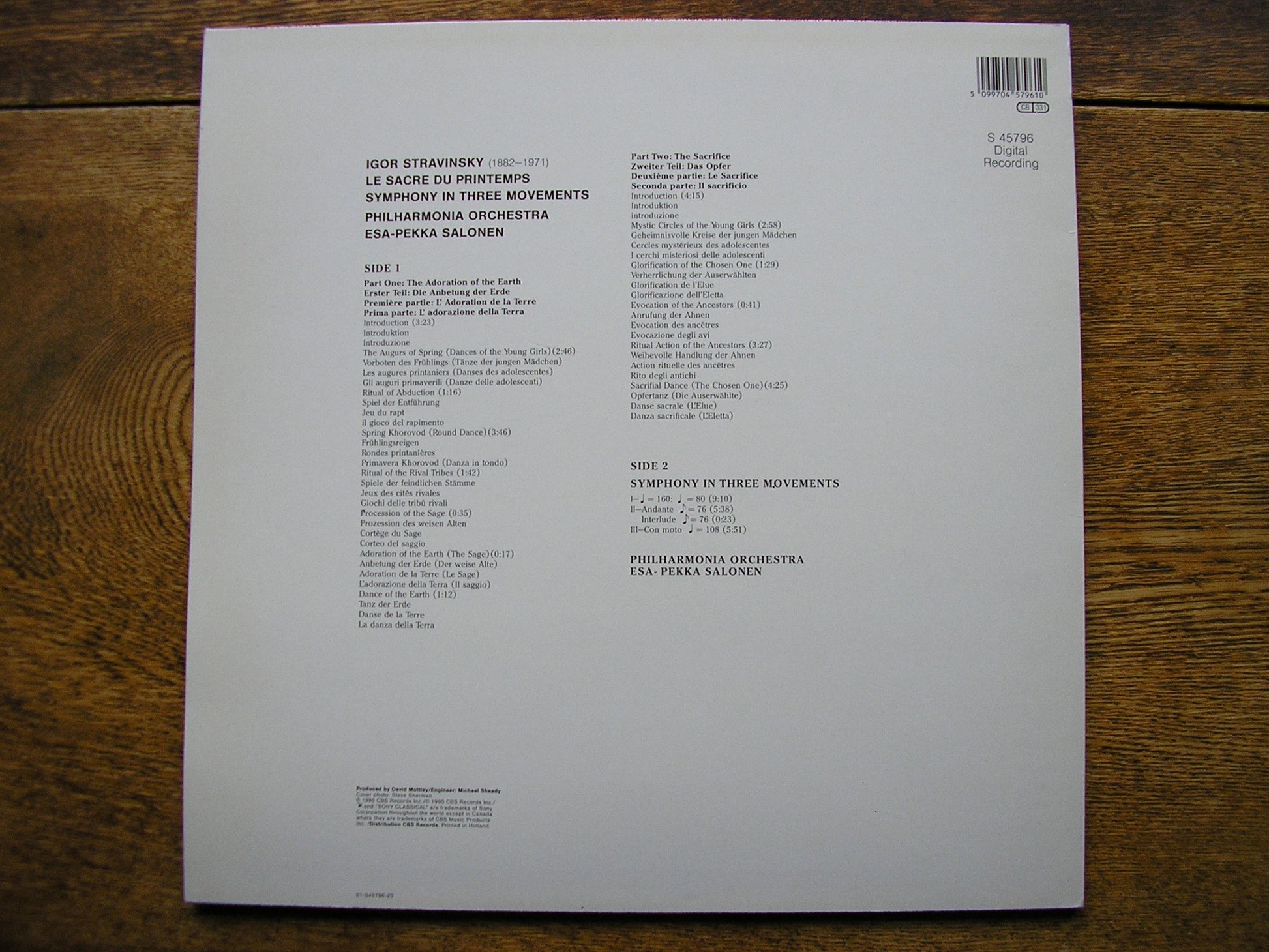 STRAVINSKY: THE RITE OF SPRING / SYMPHONY IN 3 MOVEMENTS SALONEN / PHILHARMONIA S45796