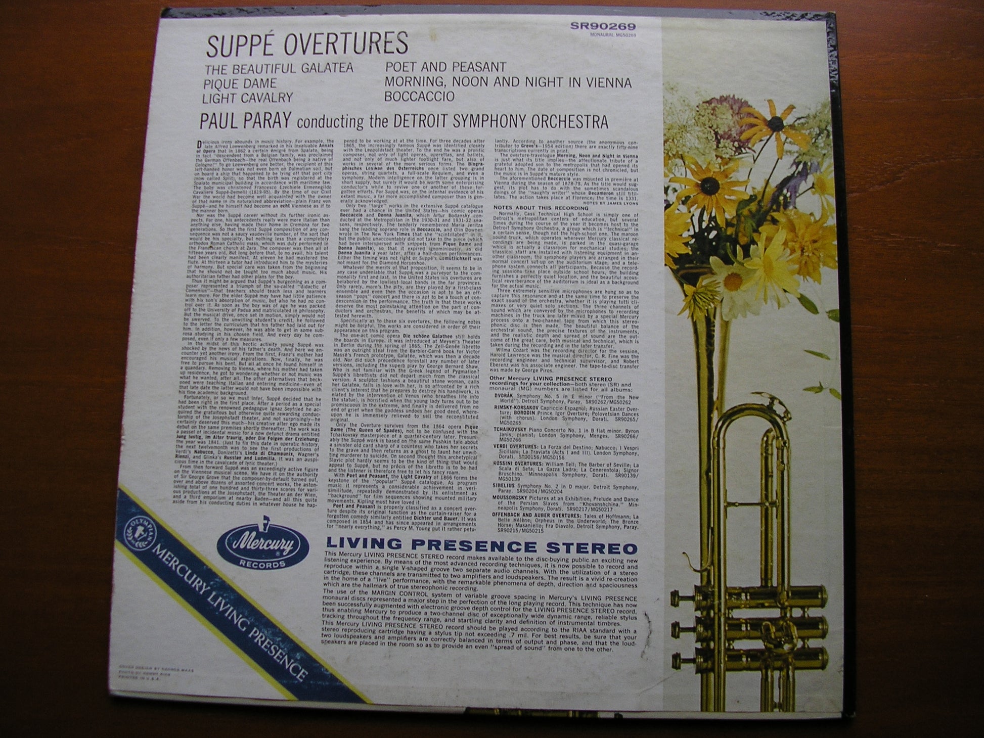 SR 90269  SUPPE: OVERTURES Boccacio / Poet & Peasant / Pique Dame / The Beautiful Galathea / Light Cavalry / Morning, Noon & Night in Vienna    PAUL PARAY / DETROIT SYMPHONY ORCHESTRA