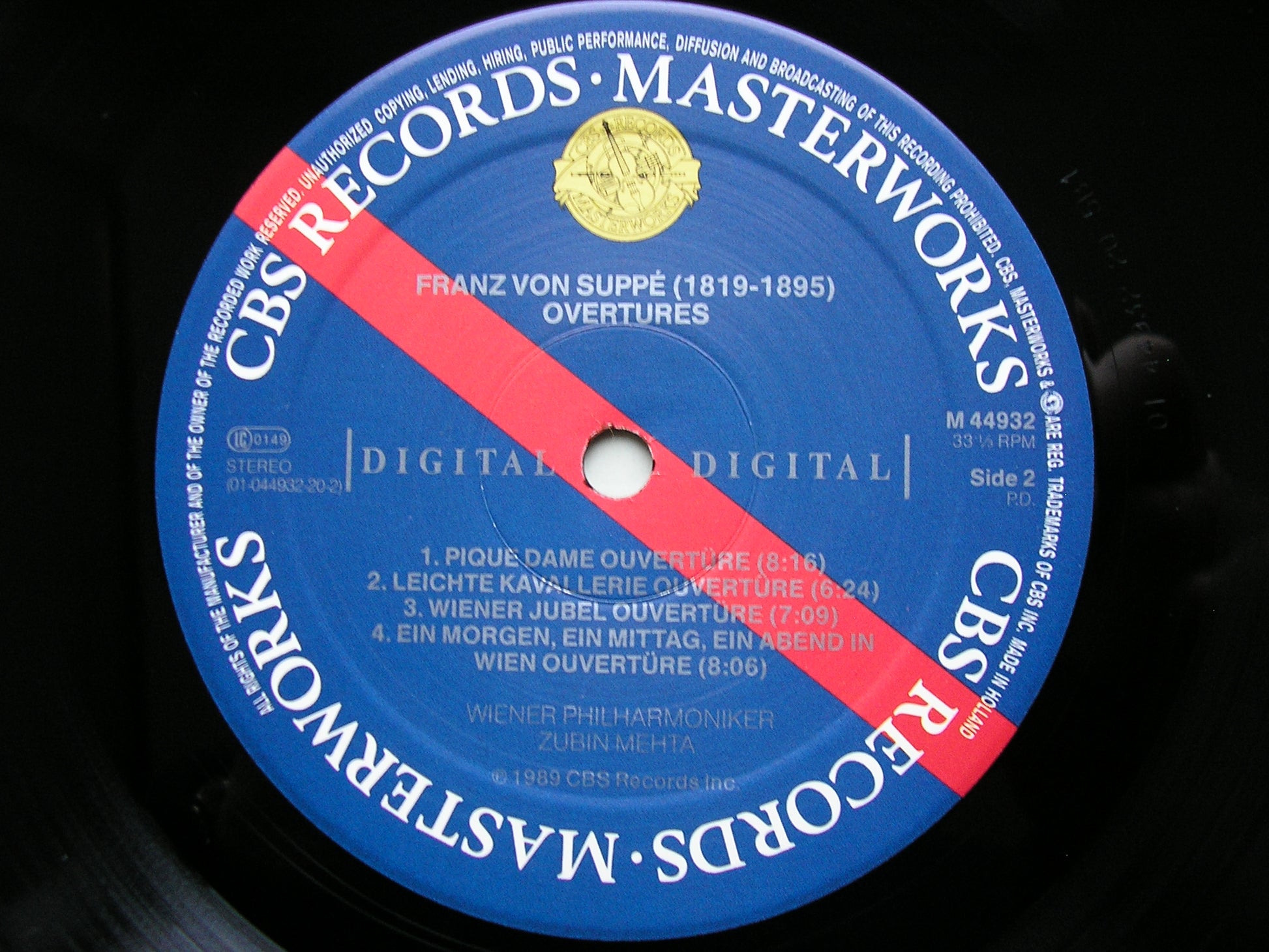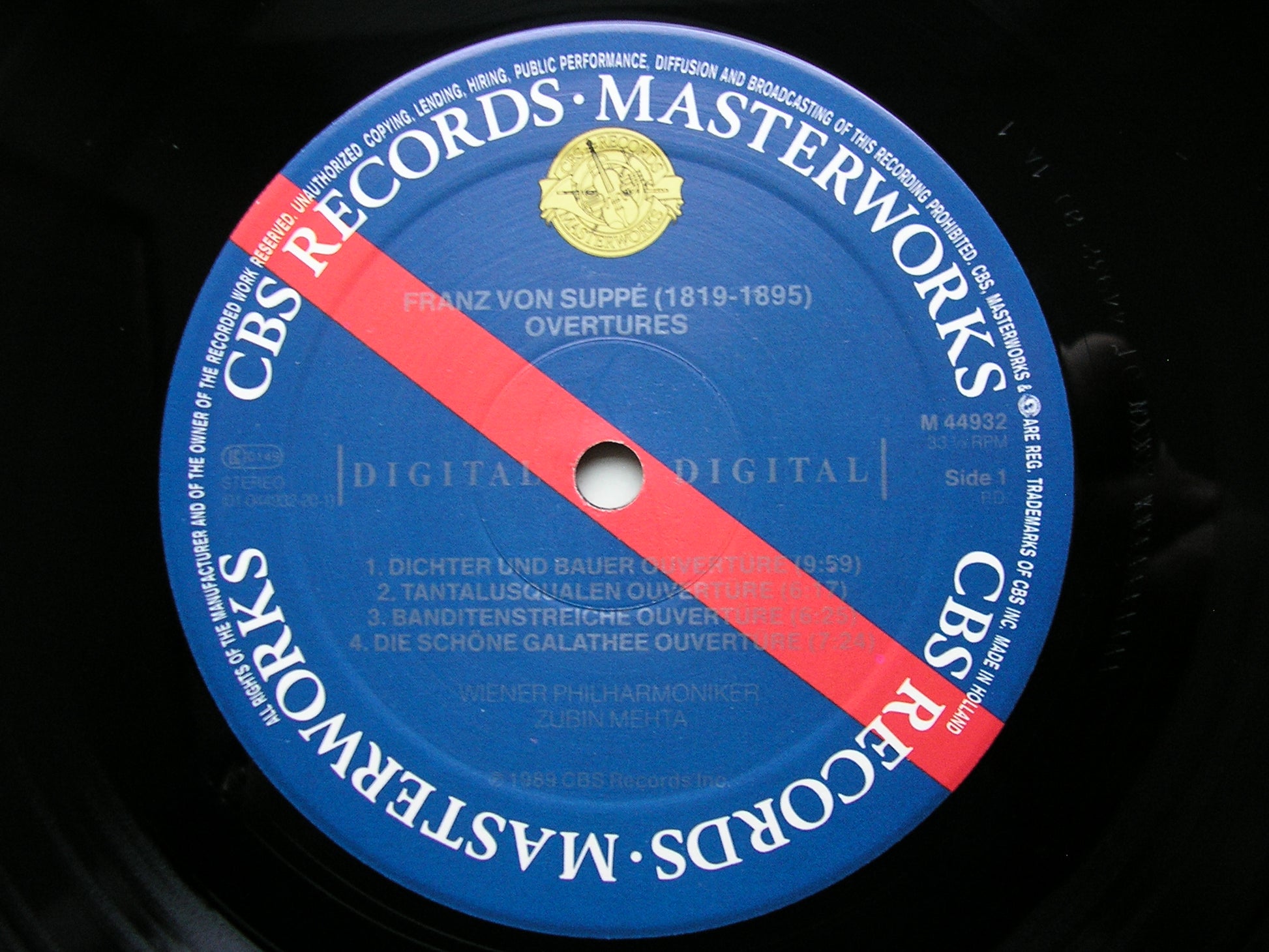 M 44932  SUPPE: OVERTURES Pique Dame / Jolly Robbers / Tantalus's Torment / Light Cavalry / Poet & Peasant / Morning, Noon & Night in Vienna / The Beautiful Galathea / Vienna Jubilation     MEHTA / VIENNA PHILHARMONIC ORCHESTRA