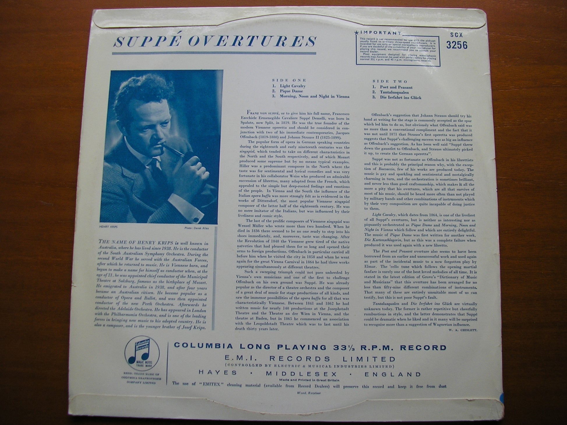 SCX 3256  SUPPE: SIX OVERTURES     HENRY KRIPS / PHILHARMONIA PROMENADE ORCHESTRA