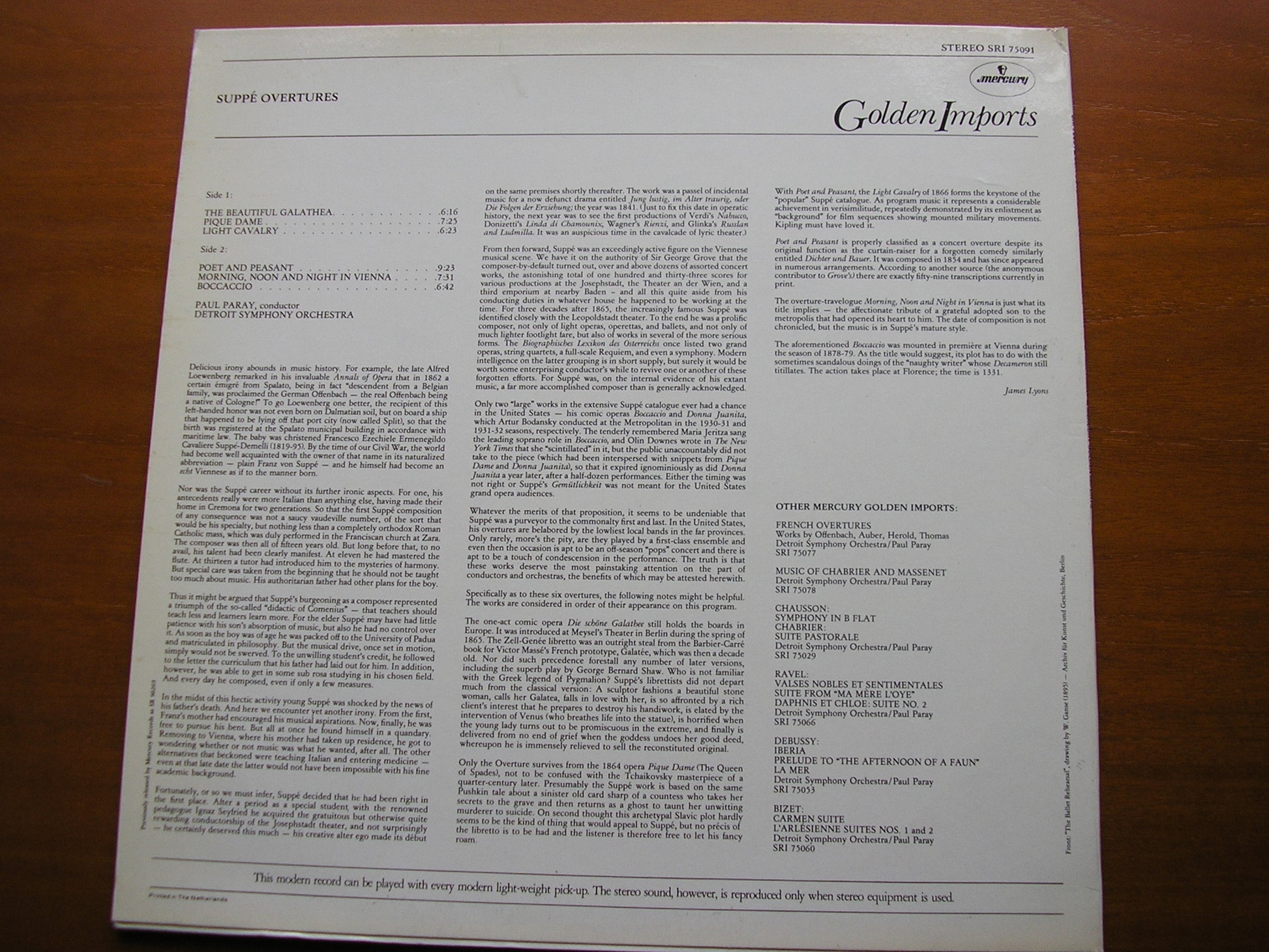 SRI 75091  SUPPE: SIX OVERTURES     PAUL PARAY / DETROIT SYMPHONY ORCHESTRA